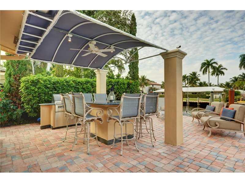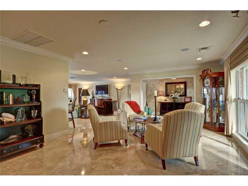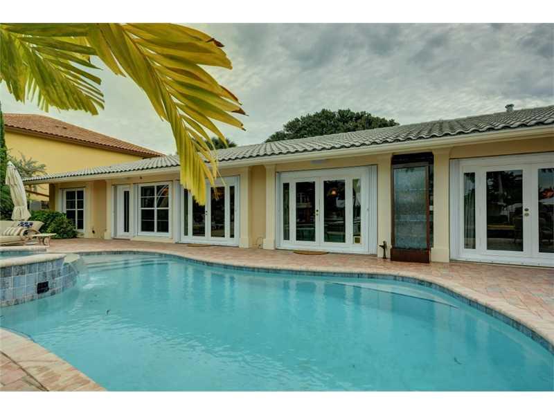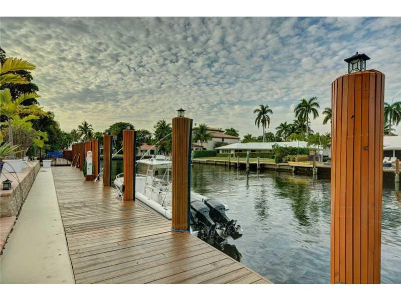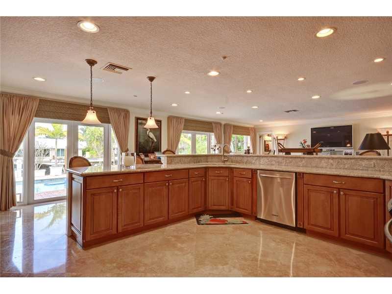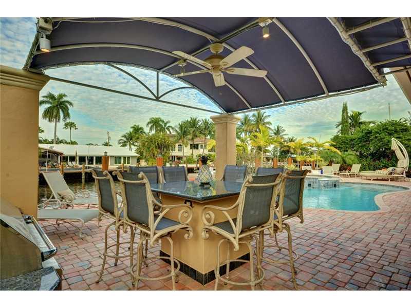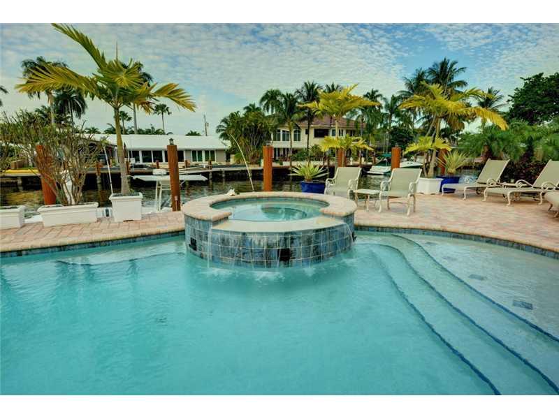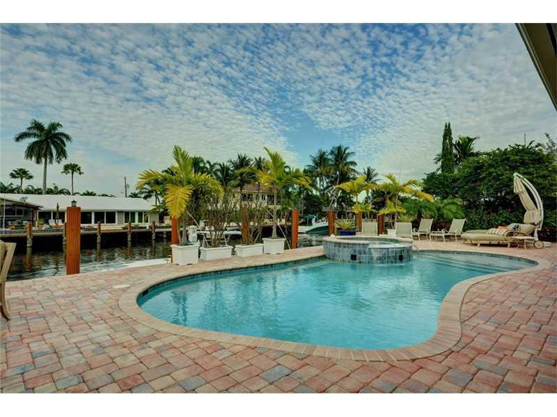 Superior renovations grace this fabulous Coral Ridge waterfront (100') home. Huge entertaining kitchen lavishly opens to all living spaces, and patio. French doors from kitchen and Master lead to heated pool/spa, covered dining, w/summer kitchen, TV, Bar B Q. Polished marble floors throughout, designer color finishes, w/an eye for detail. Fresh and colorful landscaping, w/night lighting. Full house and dock generator. 100'dock with power tower. A very warm and welcoming home. Can accommodate an 80' boat.