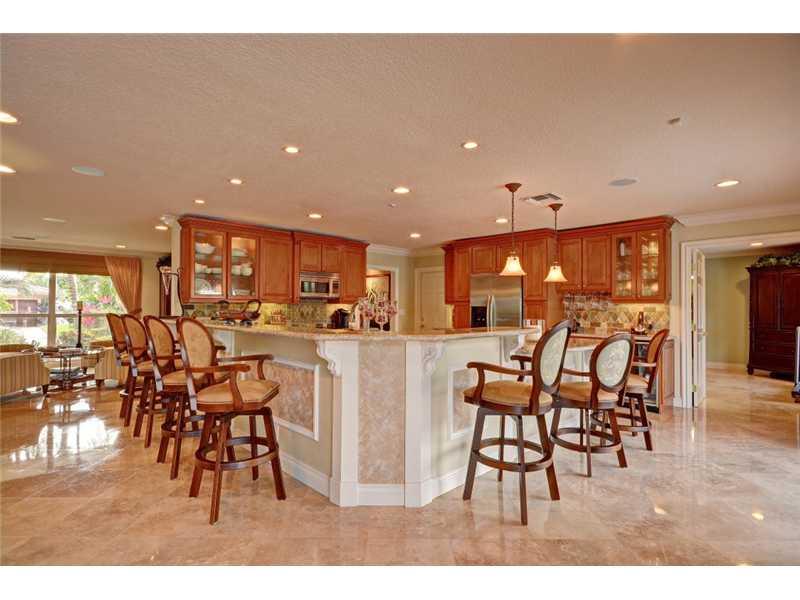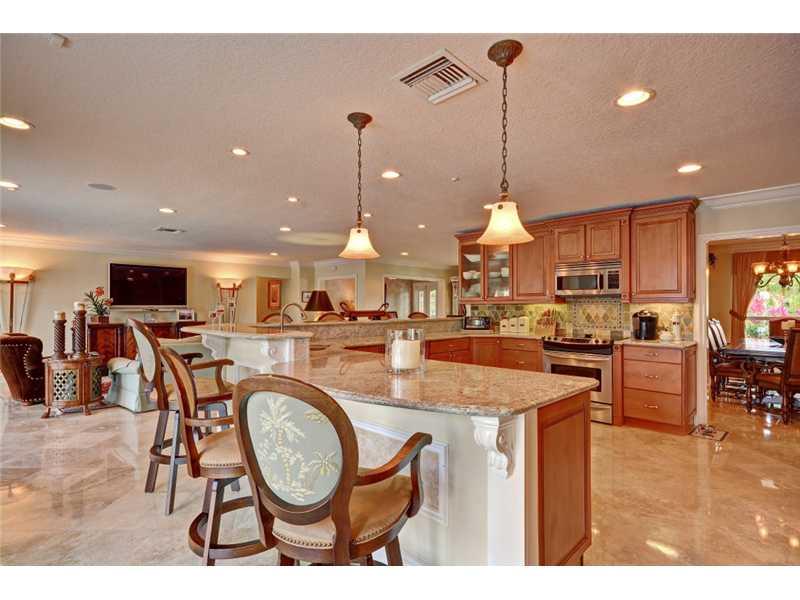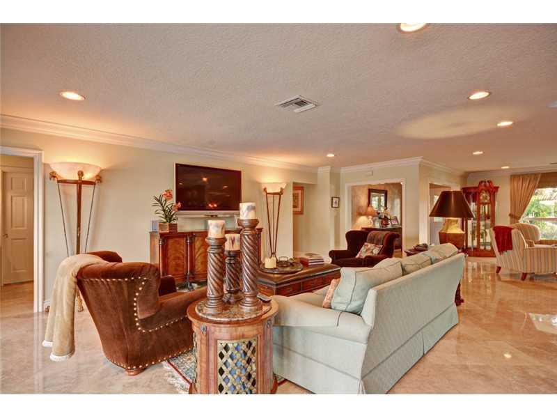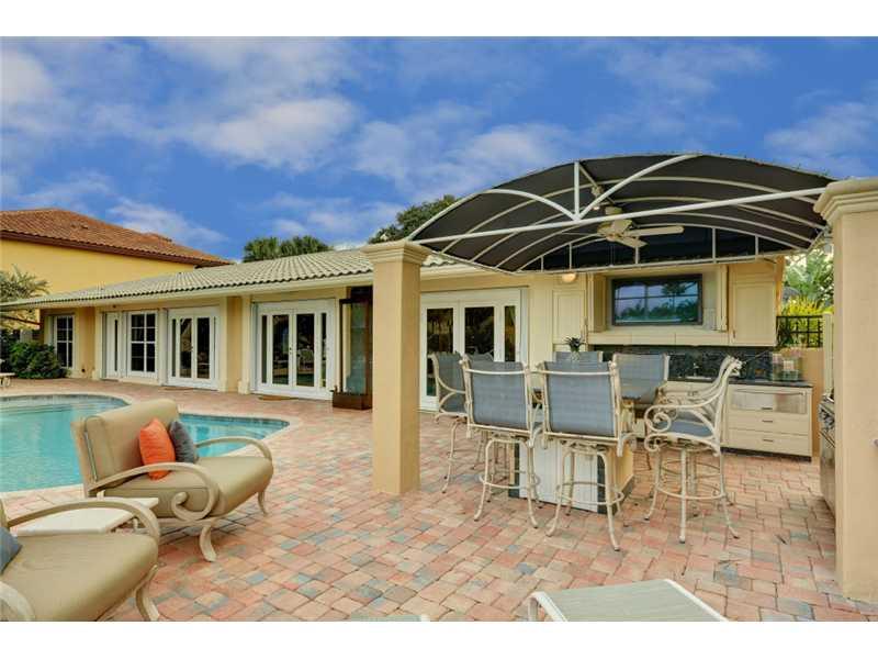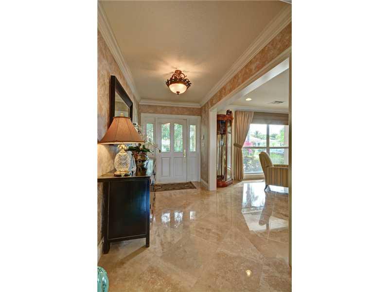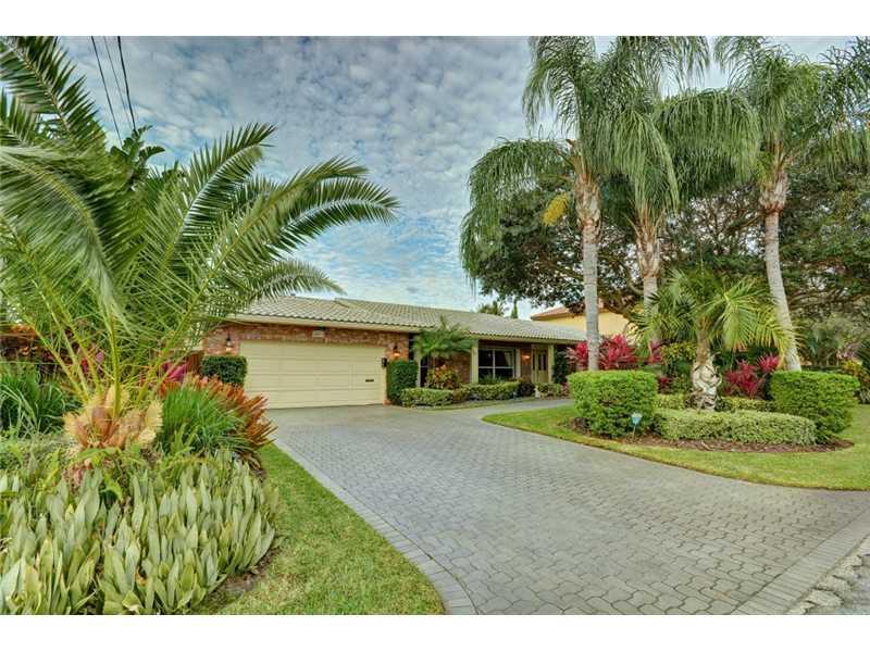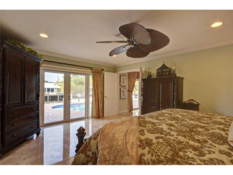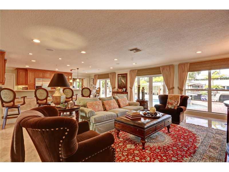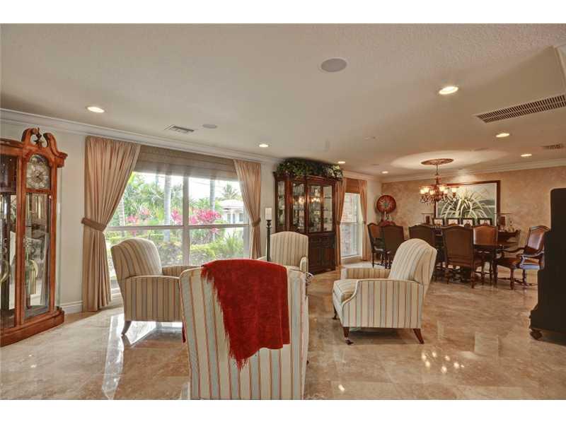 Superior renovations grace this fabulous Coral Ridge waterfront (100') home. Huge entertaining kitchen lavishly opens to all living spaces, and patio. French doors from kitchen and Master lead to heated pool/spa, covered dining, w/summer kitchen, TV, Bar B Q. Polished marble floors throughout, designer color finishes, w/an eye for detail. Fresh and colorful landscaping, w/night lighting. Full house and dock generator. 100'dock with power tower. A very warm and welcoming home. Can accommodate an 80' boat.