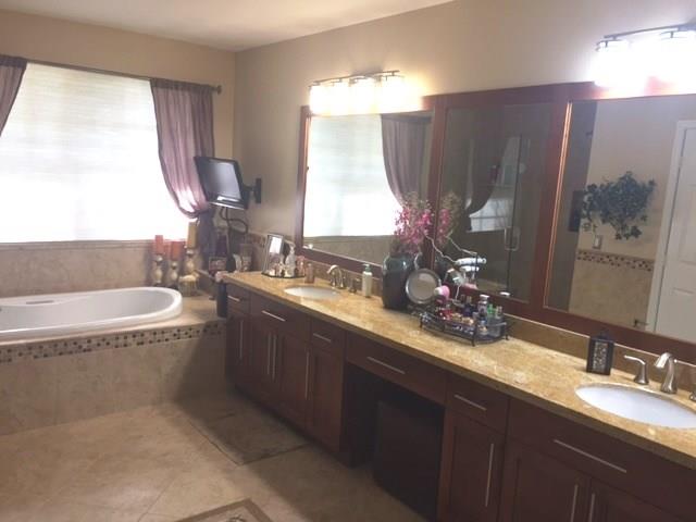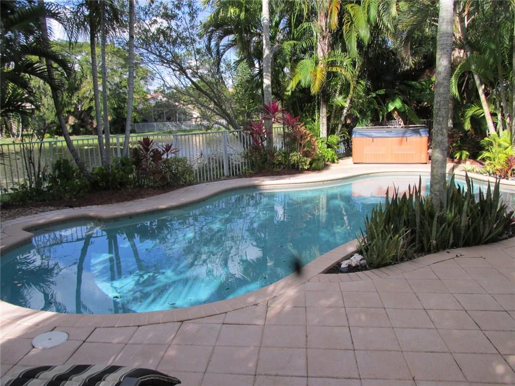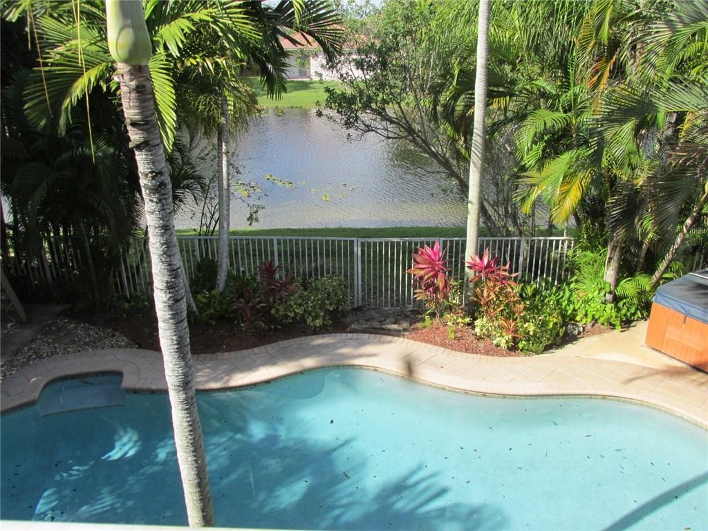Like a model! 4 BR w/sitting area (5th BR). Updated kitchen w/42"" white cabinetry, granite counters, S/S appl. 18"tile 1st floor, laminate 2nd floor. Updated Master Bath w/frameless glass shower, granite vanity, Jacuzzi tub & TV. Newer pool/paver patio w/slide. Swing can stay. Surround speakers dont stay, DR built-in, accordion shutters, paver drive/walkway, & sun deck. Wall unit in den, pool table/light & furniture For Sale. Maint Fee: 24 hr Guard,pool,sprinklers/lawn,Cable & alarm monitor, & gym.