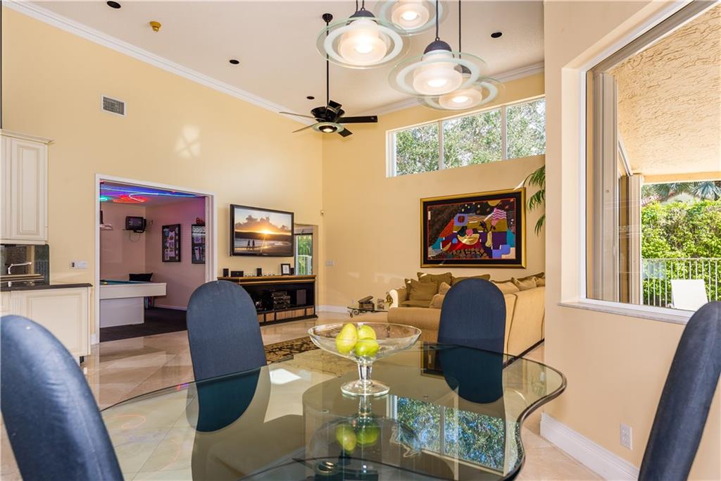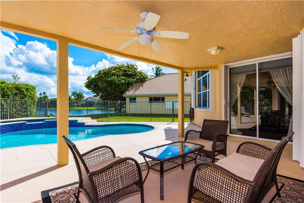 Palm Island Pool Home Stunner! Remodeled elegance with a floor plan that offers tons of room for family gatherings. Updates include: Newer roof, 24x24 Marble Floors, Two newer ac's, Water Heater, Pool Motor, Accordion Hurricane shutters, & Kitchen appliances. Kitchen has all the bells and whistles with relaxing views of pool/lake. Spacious secondary bedrooms. Large Master. Patio & Heated Pool are the perfect setting for family gatherings. Circular driveway. Guard Gated with playground. Excellent schools.