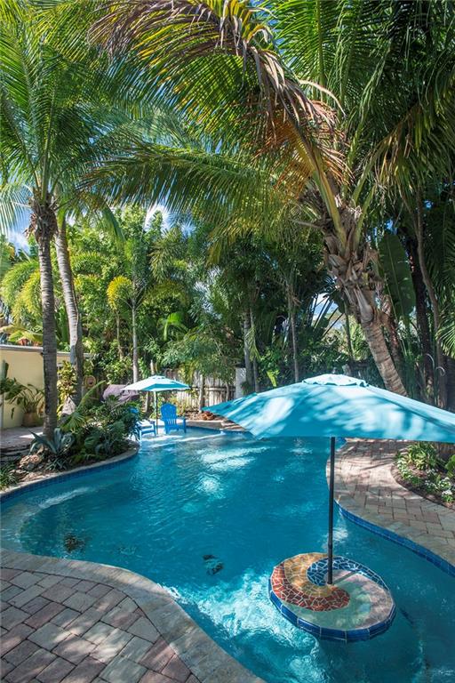 Imagine...in coveted East Fort Lauderdale...1.5 miles from the Atlantic Ocean, this 2/1 home was built in 1951 and lovingly restored with vintage woodwork, doors and floors. Dade County Pine flooring was recovered from a 1926 villa and installed in the living room, hallway and kitchen. 400+ sq ft Florida room with acid stained concrete floor and dry bar with wine cooler. Saltwater pool with a 6 inch deep shelf and a wrap around built in bench and a table in the pool, and there's even an outdoor fireplace!