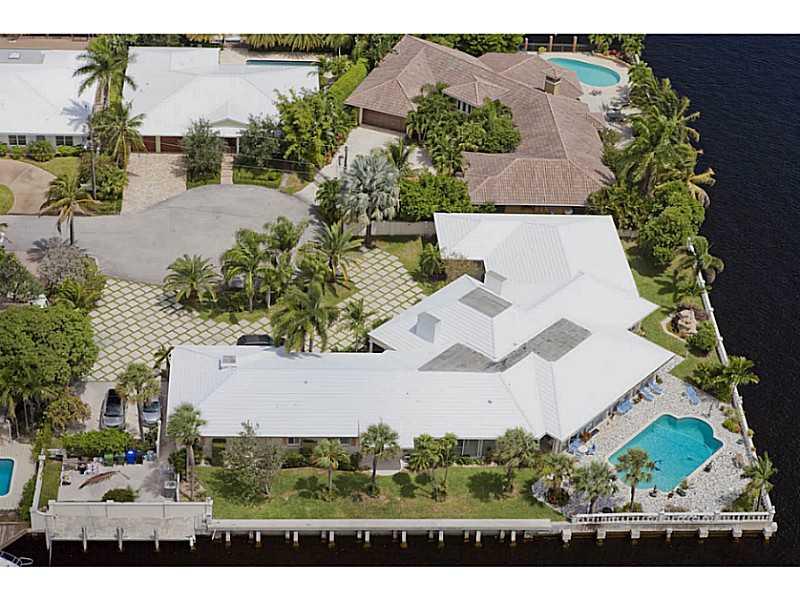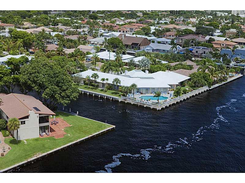 Intracoastal SE Point Lot PLUS additional adjoining lot. Over 330 feet of total water frontage with 140' on the Intracoastal and 190' on side canal. Can be divided into 2 lots. Classic Florida home with 9' ceilings sits in its ORIGINAL condition on 1/2 ac re+ lot. Home being Sold at Land Value has incredible potential to be renovated into spectacular residence, or this double lot can accommodate a sprawling new estate. Located in prestigious Coral Ridge Country Club. See brokers remarks for showing!