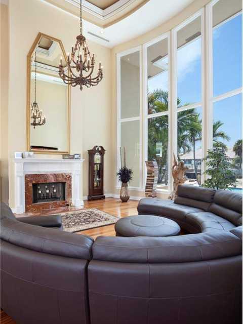 Timeless style sets the stage for distinctive living in a total of 5,162 square feet with detailed moldings, 4 bedrooms, 4½ baths, 4-bay garage & impact-glass windows. Rising to a 22±-foot coffered ceiling, the dramatic great room is appointed with Brazi lian cherry floors, a marble fireplace, & view-filled bow window wall overlooking the pool. Through a columned entry, the tray-ceilinged formal dining room opens to a poolside loggia. The gourmet kitchen combines rich maple cabinetry & granite counters.