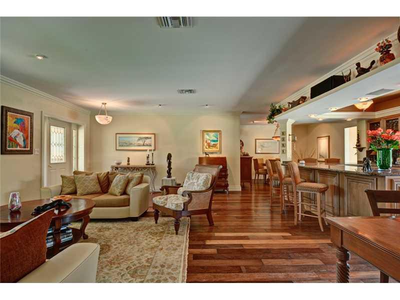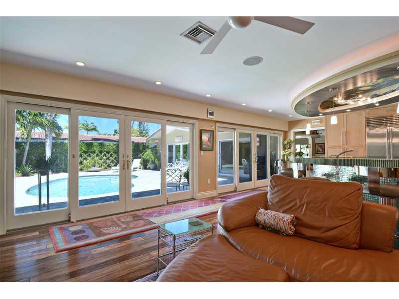 Looking for the "wow" factor? Here it is! This 4 bedroom, 3 bath pool home is totally renovated with all the bells and whistles. Fantastic kitchen, formal living and dining rooms, large wet bar, all wrapped around a private backyard and pool area. Rea l hardwood floors, innovative decorating, unique decor and specialized lighting effects. Located on a quiet street, and only steps to the beach. A great home for entertaining your most important clients, family members and friends.