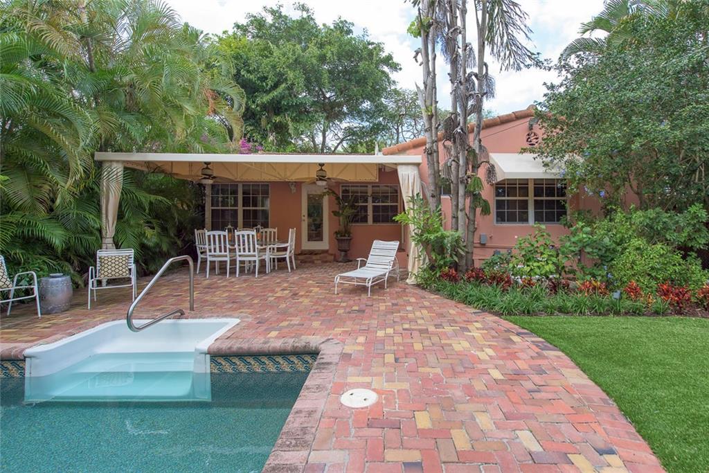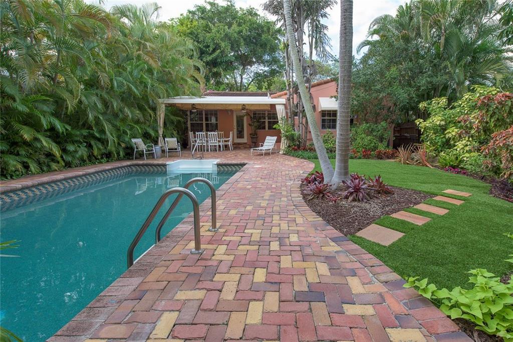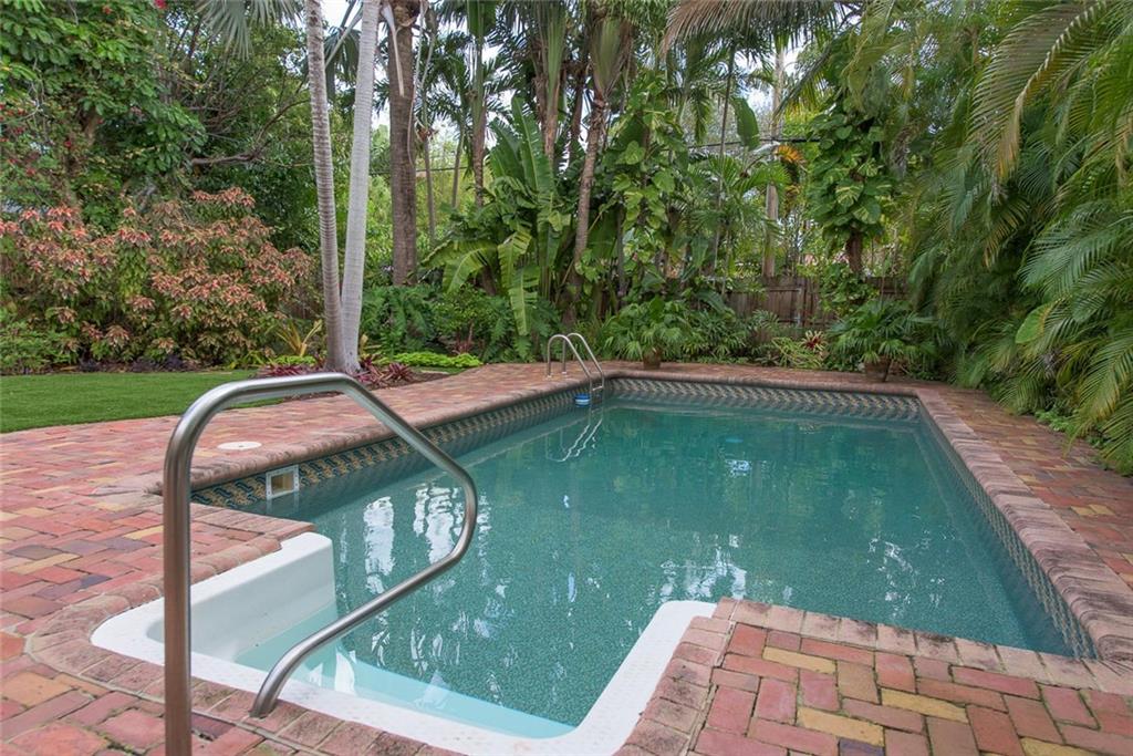 Victoria Park 3BR/2BA pool home offers; hardwood floors, a tile roof, Chicago brick paved drive, walkways and patio, fireplace, built-ins and a stylish new kitchen. An open floor plan boasts a central kitchen with spacious breakfast bar and opens to both living and family rooms. One of two guest rooms offer a wall of built-ins ideal for use as a den. Another of the bedrooms has a bath in suite and the third boasts a roomy walk-thru closet. A covered terrace overlooks a lushly landscaped yard & pool
