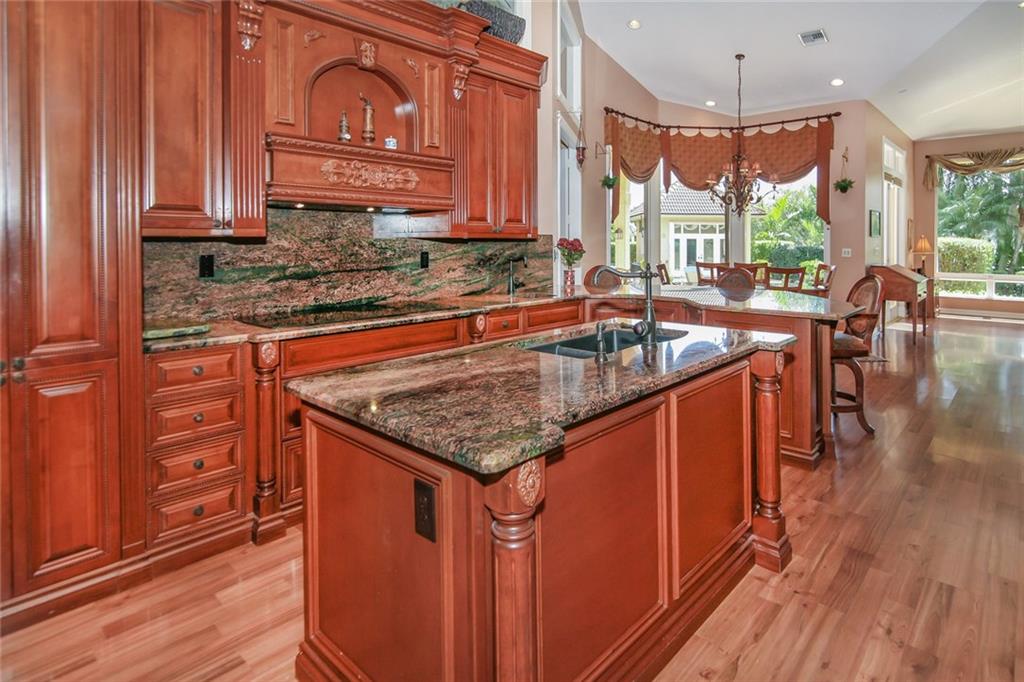 Stunning 4/3.5 estate home in The Hamlet of Davie .Chef’s kitchen w/superior finishes including: Thermador appliances, double ovens, center island, custom cabinetry. Imported stained glass/mahogany doors, resort style pool w/guest house, full bath, huge master suite w/sitting area& separate office/gym room. 3 car side entry air conditioned garage. A-rated schools, close to shopping, dining and all major commuting routes.