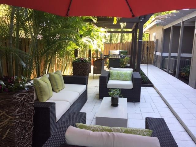 Spacious Newer Construction Town Home. Pristine marble floors 9'ceilings, eat-in kitchen, quartz countertops,stainless appliances and separate dining room. Living room overlooks custom designed pool with waterfall. Large Master has walk in closet and bath with separate shower/tub. Two bedrooms with large closets,loft room & convenient laundry on upper floor. Sweeping,over 1300' of out door entertaining area in a private tropical paradise. Beaches,Las Olas and Flagler Village near-by.Walk to Wilton Drive