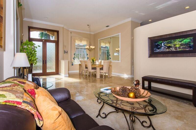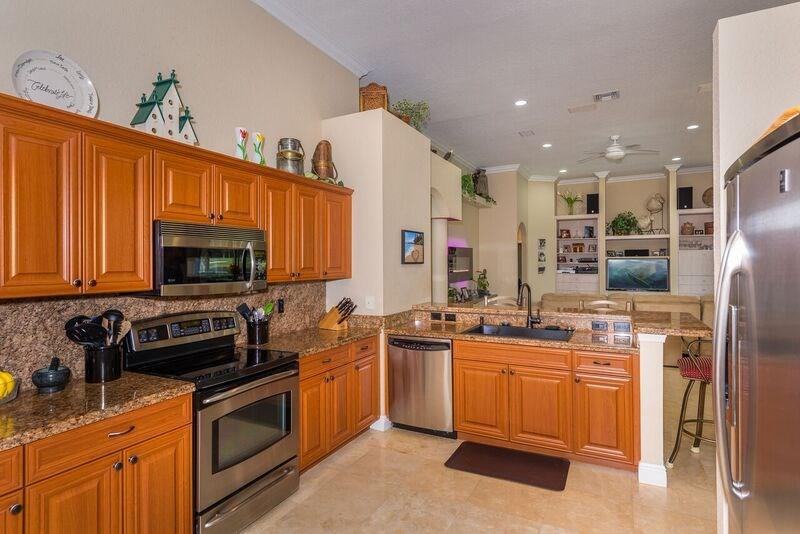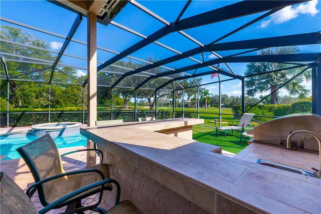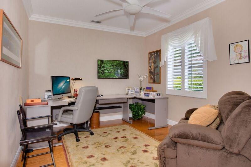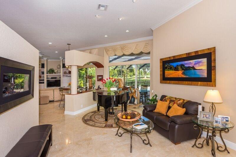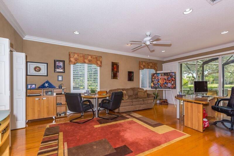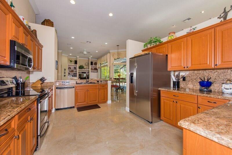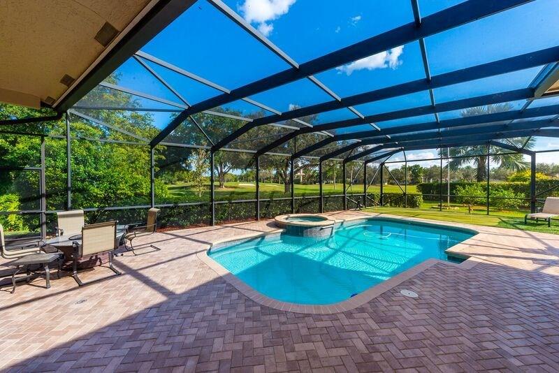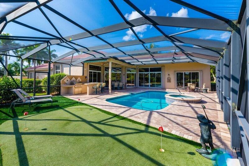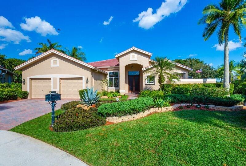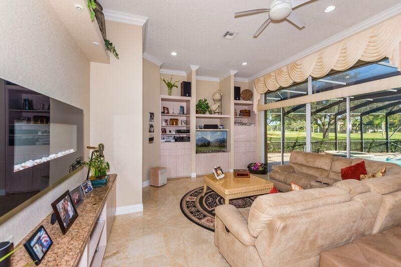 STUNNING GOLF VIEWS FROM THIS IMPECCABLE UDPATED HOME ON PREMIUM CUL-DE-SAC LOT! MARBLE/WOOD FLRS THRUOUT, CROWN MOLDING, SCREENED POOL/PATIO AREA INCL BUILT-IN GRILL, HEATED SPA, EXTENDED PAVER PATIO, SPEAKERS/PUTTING GREEN. NEW ROOF 2009, NEW SCREEN ENCL 2012, 2 ZONED A/C (ONE 1½ YR/ONE 6 YR) COMPLETE LED LIGHTING INSIDE/OUT SAVES FPL$. GRANITE KITCHEN, WOOD CABINETS, UPGRADED MARBLE BATHS, 2 BDRMS CONV TO 1 LG BDRM, EXPANDED GARAGE INCL LG BUILT-IN WORKSHOP, IMPACT FRONT DRS, ACCORDION SHUTTERS. HURRY!