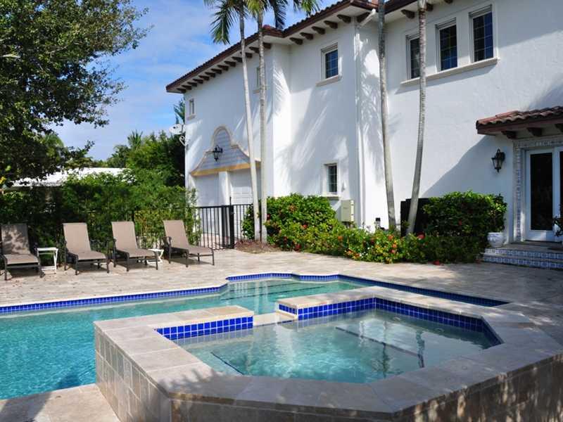 Situated in guard gated Sunrise Intracoastal, this fine custom Mediterranean home superbly crafted w/style & attention to detail. Grandly scaled living rm w/vaulted ceilings and beams, wood Fireplace; Oak paneled library; Chef's kitchen with gas; Family R m; 3 Ensuite bdrms, 4th used as office in master. Balcony on master with views of landscaped garden flanked by fountain & pergola. Spacious screened garden Rm. Large side yard with beautiful new heated pool, spa & pavers. close to Galleria Mall & beach.