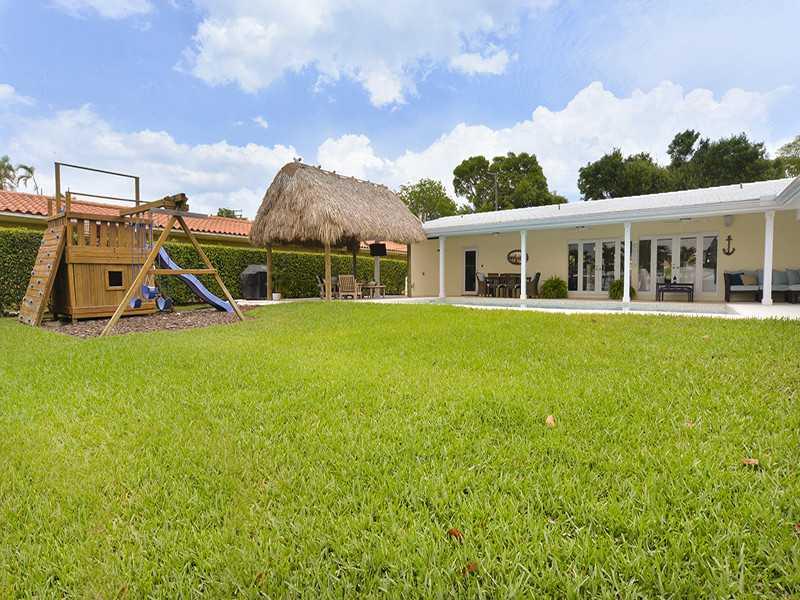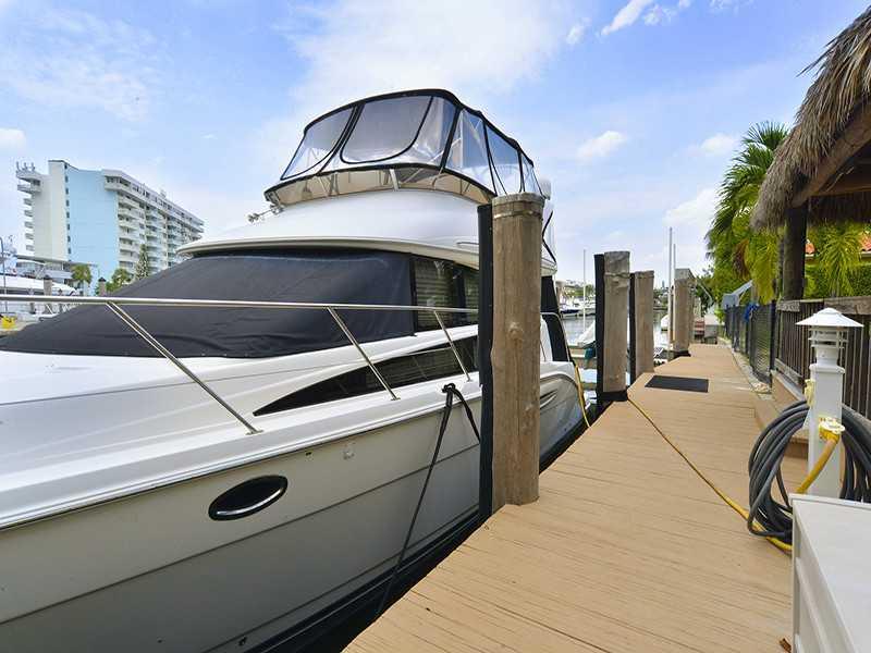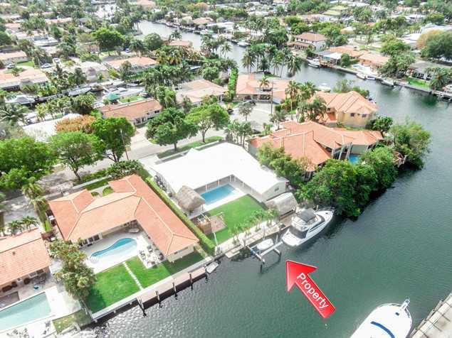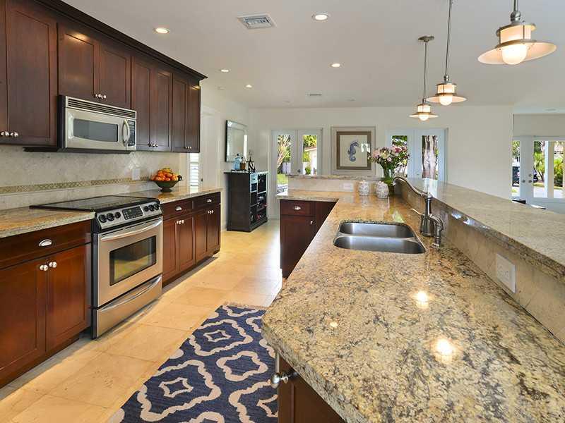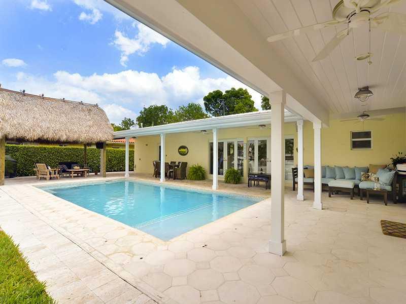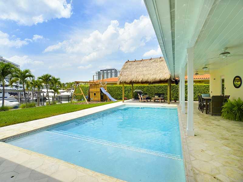 Rare opportunity to own a unique luxury waterfront costal style home w/ 91' deep direct access water frontage w/no fixed bridges. Appx 3K sqf w/ open airy floor plan + 750 sqf covered outdoor living space. Master suite w/ French doors to pool, his/her's w alk in closets. Completely remodeled in 2009: new roof, HVAC, heated pool, impact windows/doors, marble/rectified porcelain floors, granite countertops, stainless appliances. Enormous yard w/2 tiki huts, 70' dock, 27K lb lift