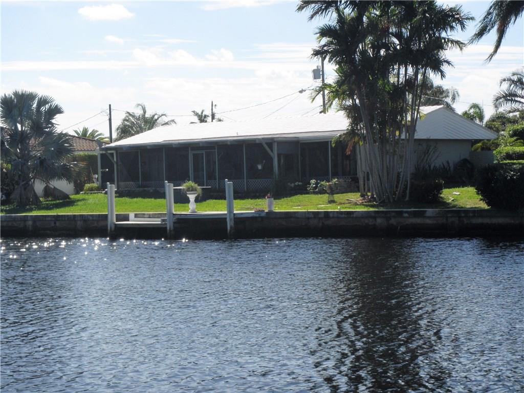 Superior location on a cul-de-sac with views of intersecting canals. Larger lot with quick ocean access. Room for pool. 1 high fixed bridge. Most rooms overlook the water! Open ceilings, French doors, stainless appliances, many closets, huge screened patio. New A/C in 2014. Tile roof recently sealed. Built in shelving to display artwork. Unique layout makes it a decorators dream. 3rd bedroom converted to a formal dining room. Can be purchased turn key. Estate sale, closing subject to probate.