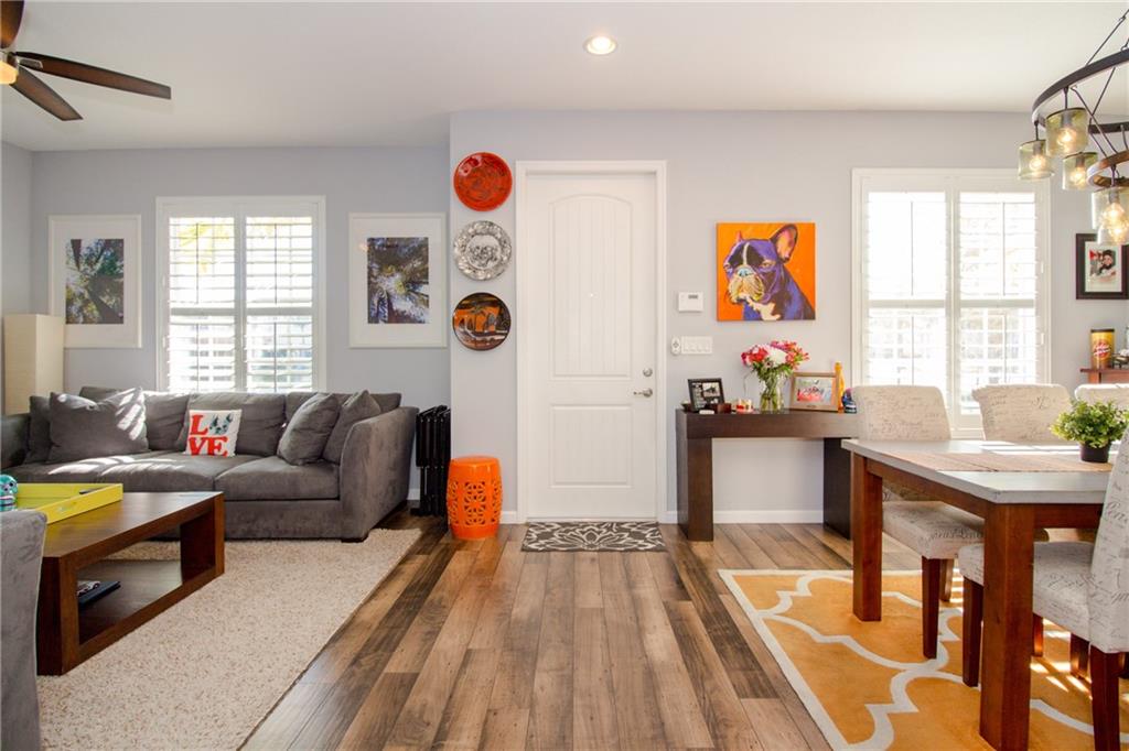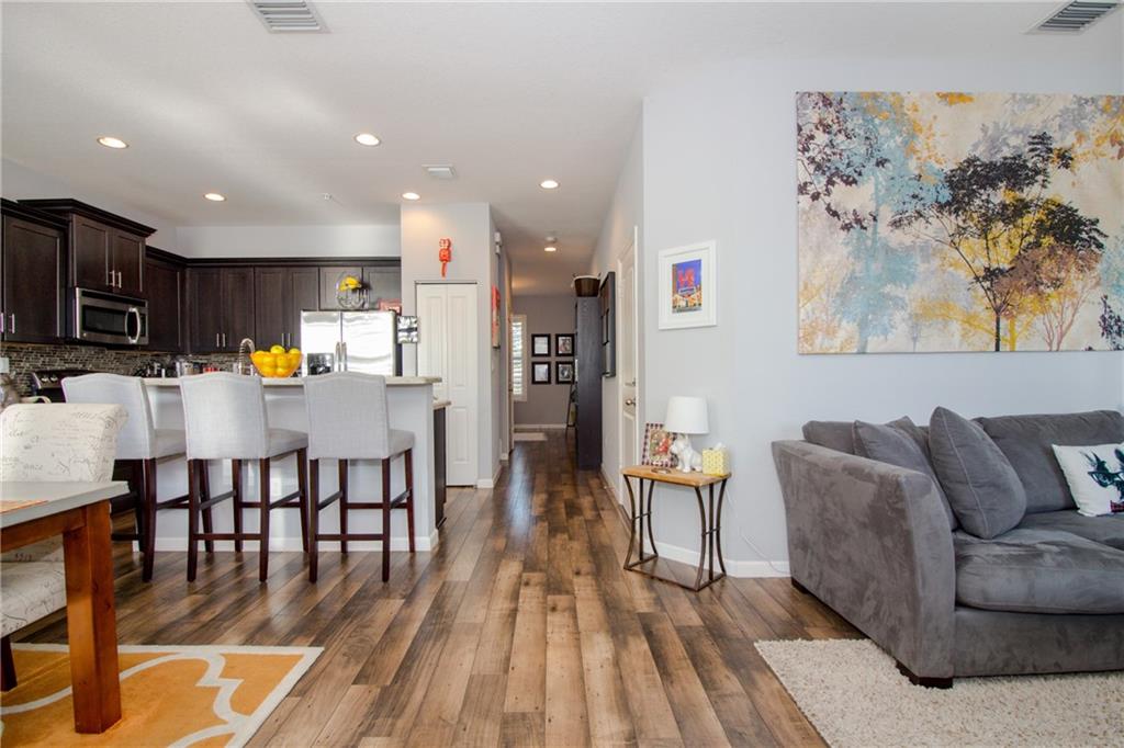 Beautifully designed two story Townhouse over looking a lake in a gated neighborhood. This three bedroom 2.5 bathroom townhouse was purchased from the developer and had many upgrades added before the owners moved in to the home. Front loading LG washer and dryer, recessed lighting, Bosh dishwasher, ceiling fans, and built in storage in garage to name a few. Please take a look at the virtual tour of this home and make an appointment. I will even take you out and show you the trails around the lake.