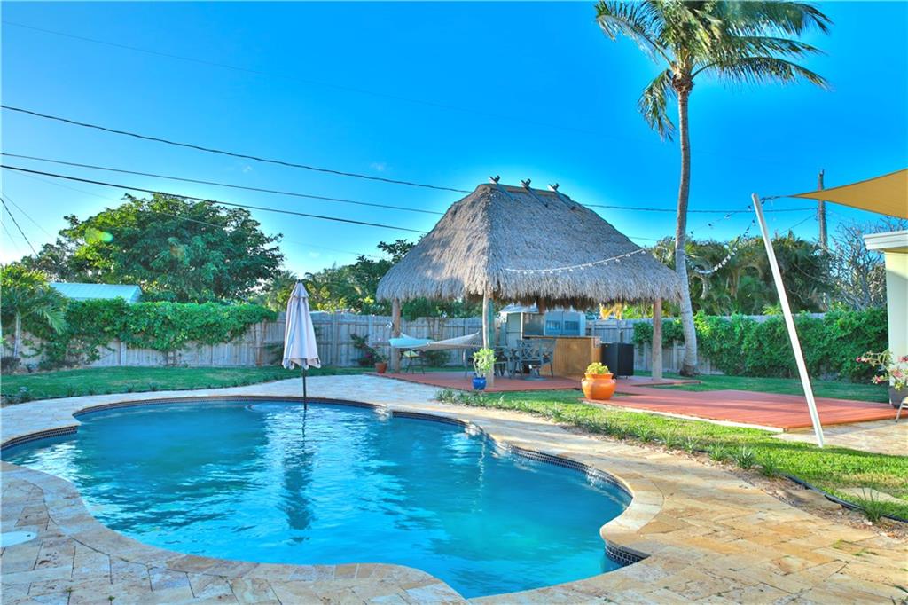Beautiful home in Poinsettia Heights built to entertain. Gorgeous pool and Tiki Hut w/ outdoor shower, wet bar, refrigerator, and 2 tv's. 3/2 with separate laundry room. Interior completely redone in 2014 and upgraded with driveway, tankless water heater, sprinkler system, impact windows and doors, new electricity throughout and open concept kitchen w/ marble island. This home is ready for immediate move in. 1.5 Miles to Fort Lauderdale Beach, 1 Mile to Holiday Park and 2 Miles to Las Olas