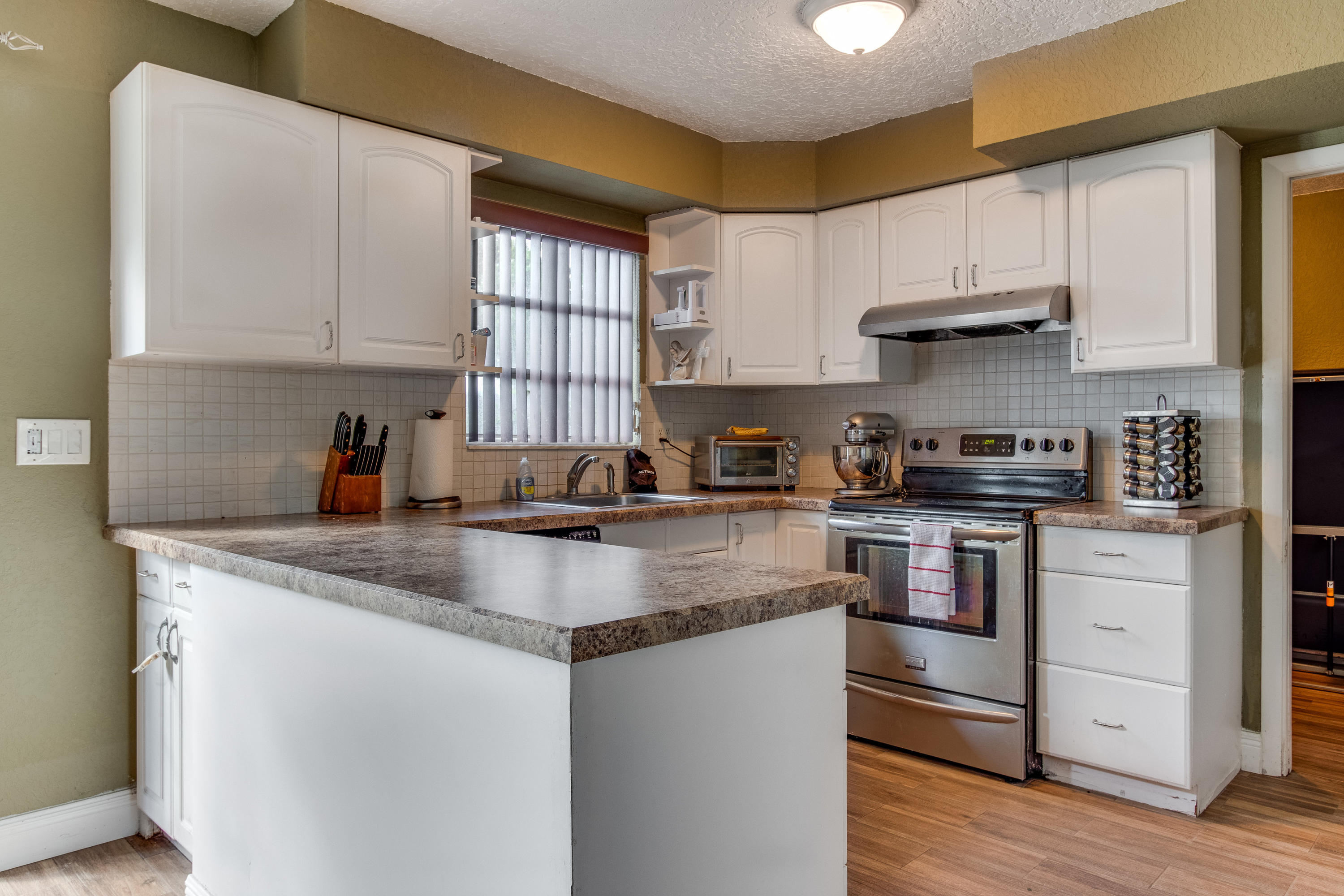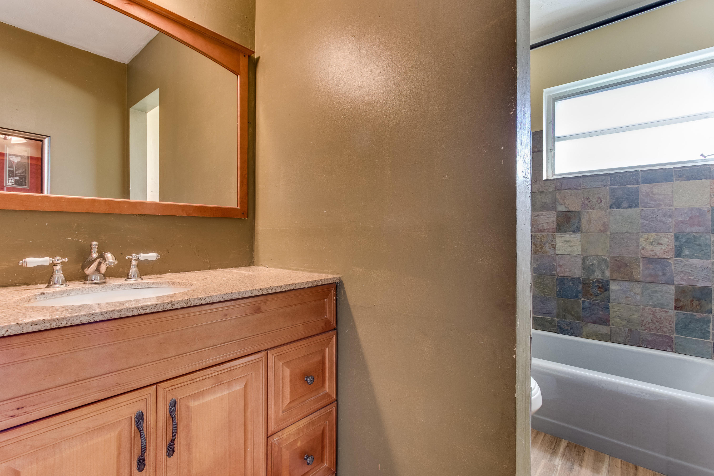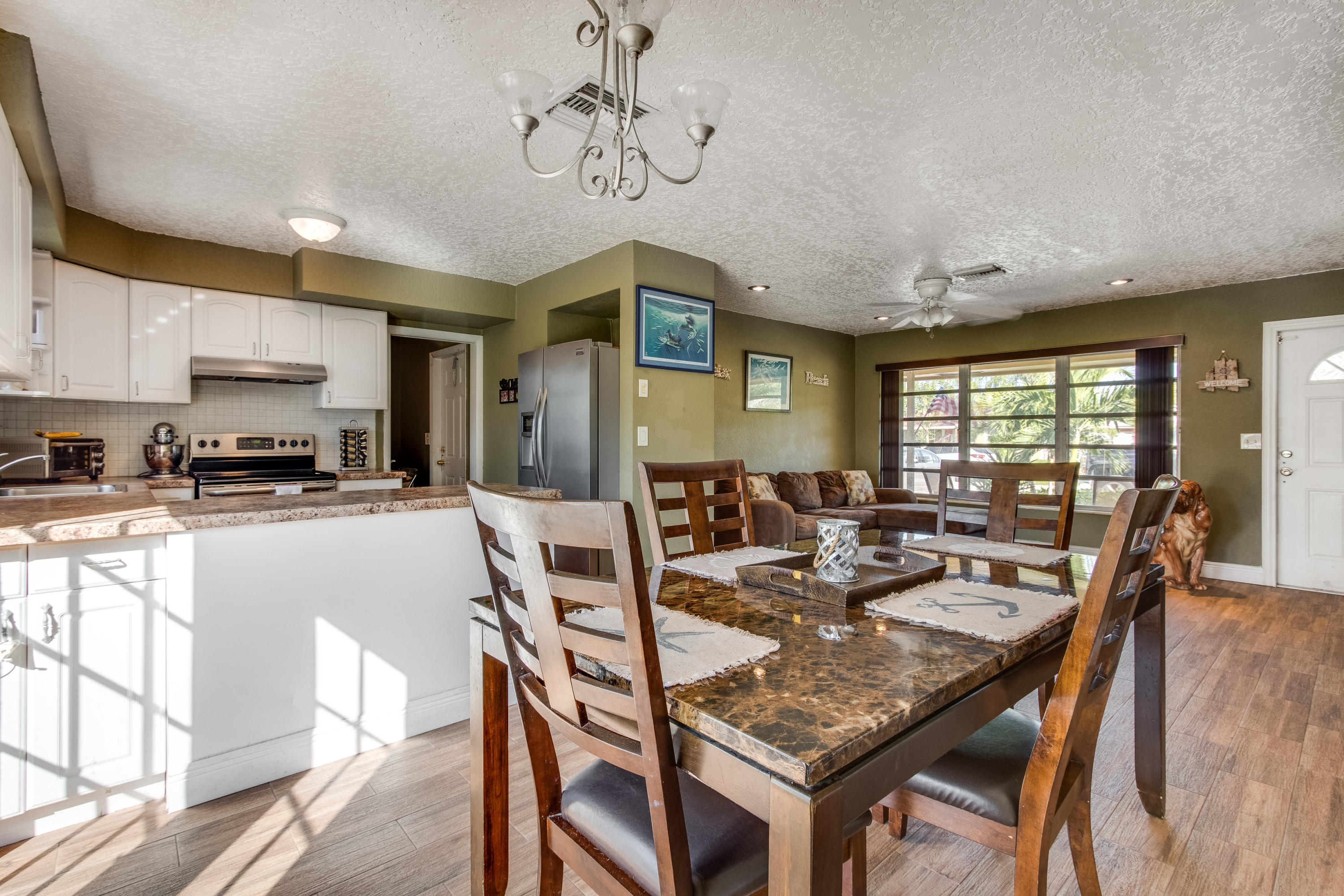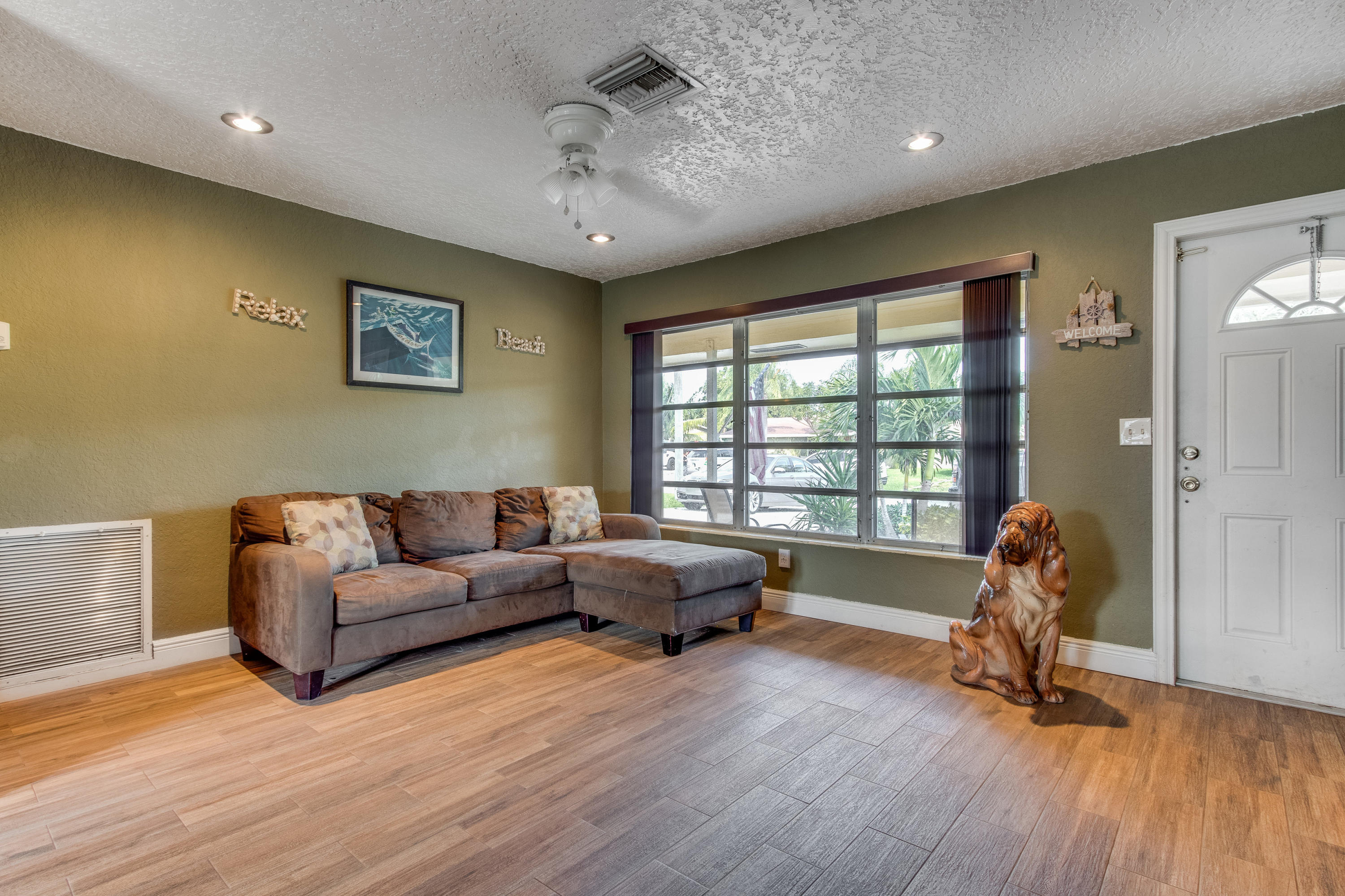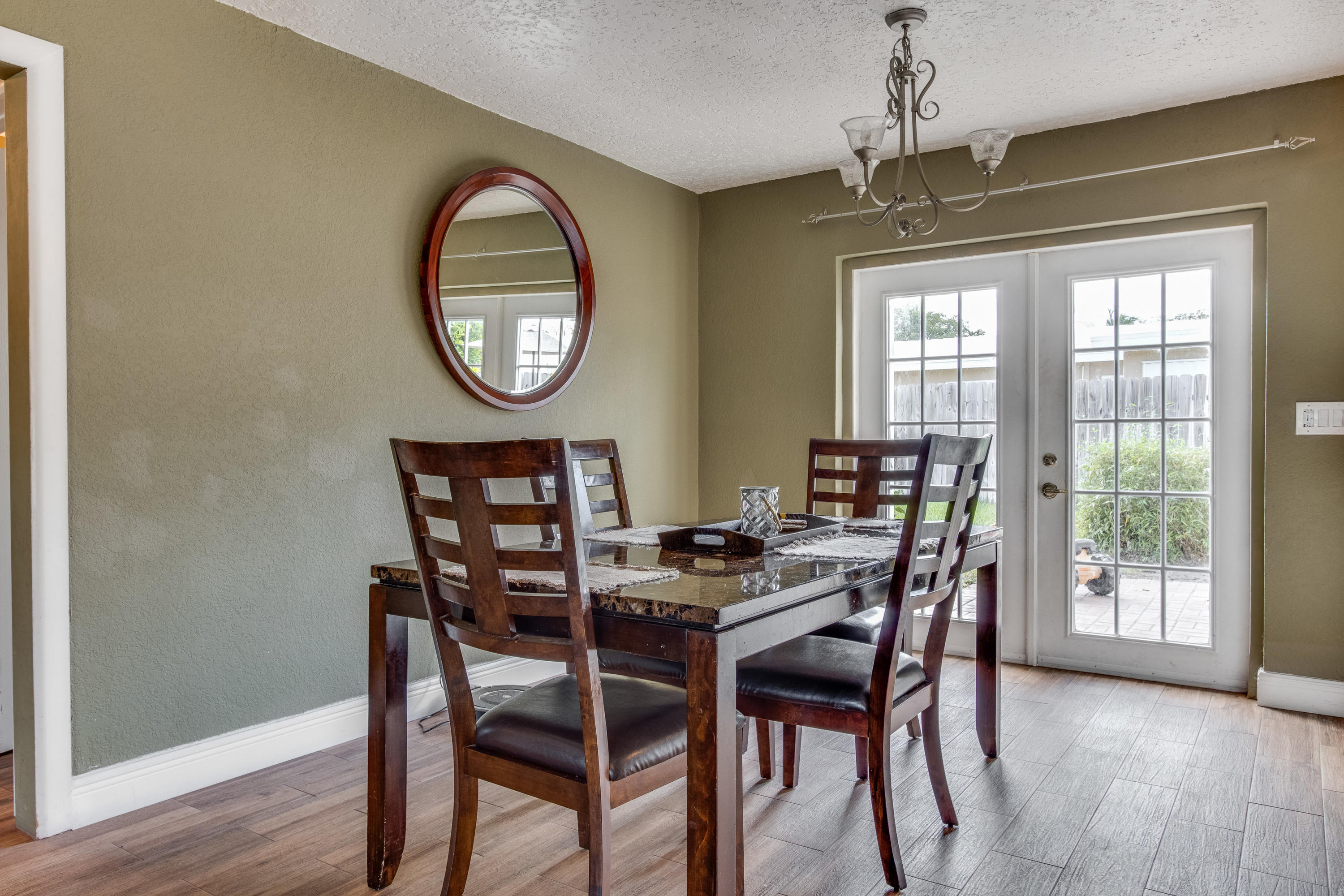 Lovely three bedroom home on a quiet, slow traffic street. Beautiful, porcelain wood look tile throughout. Fully renovated kitchen and baths. French doors lead out to large open yard with brick paver patio. Room for boats/RV on each side of home (both sides have gates). Circular drive.