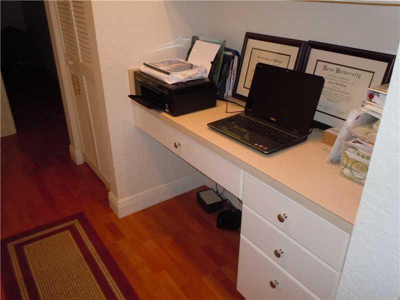 Wow!! Rare 1 story Villa is ready for just 1 lucky buyer!! This light & Bright move-in ready home features 3 bedrooms (all have closets) 2 full sized bathrooms and even an office/work space with cabinetry and wired for computer access. The glowing wood-li ke floors will be easy to care for. Upgraded cabinets in kitchen along with the snack counter and breakfast area makes this a well-thought out floor plan. Accordion shutters throughout this lovely home in a gated community.