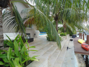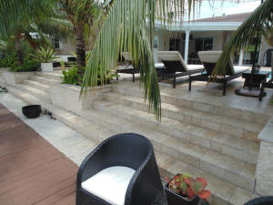 BRING YOUR CLIENTS TO THIS STUNNING 4BR OCEAN ACCESS HOME COMPLETE WITH A 10K LB BOAT LIFT AND ONE FIXED BRIDGE TO THE INTRACOASTAL. BOASTING 75 FT ON WATER, 39FT DOCK WITH ELECTRIC AND WATER, 2 CAR GARAGE, CIRCULAR STAMPED CONCRETE DRIVEWAY, NEW HURRICANE IMPACT WINDOWS IN FRONT AND HURRICANE SHUTTERS (PANELS AND ACCORDIANS) FOR OPENINGS. LARGE POOL AND HOT TUB WITH TRAVERTINE DECK AND STUNNING OUTDOOR LIVING AREA WITH PRIVACY OF TALL BAMBOO-LINED FENCE, COCONUTS AND LUSH TROPICAL LANDSCAPING. BOTH BATHROOMS COMPLETELY REDONE, NEW DARK HARDWOOD ENGINEERED FLOORS THROUGHOUT, ROOF APPROX 11 YRS, A/C 8 YRS. ABSOLUTE MOVE IN CONDITION. PROFESSIONALLY DECORATED AND SHOWS LIKE A MODEL.