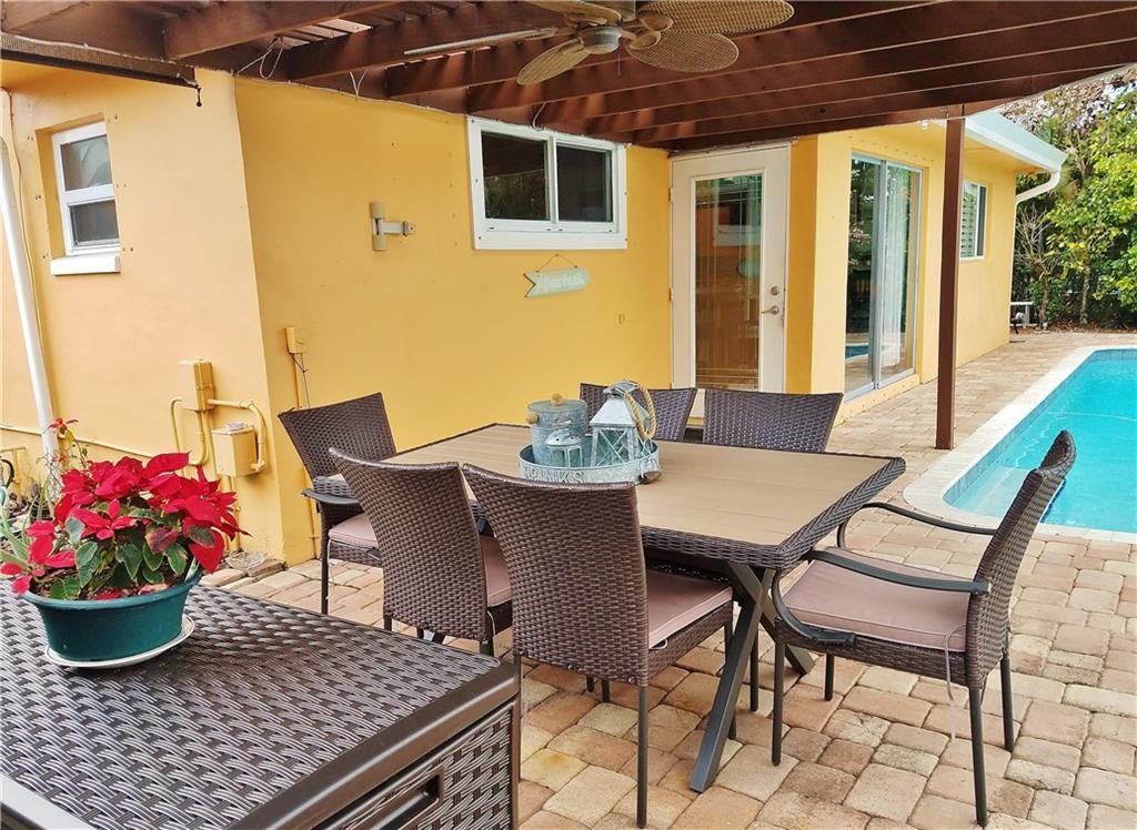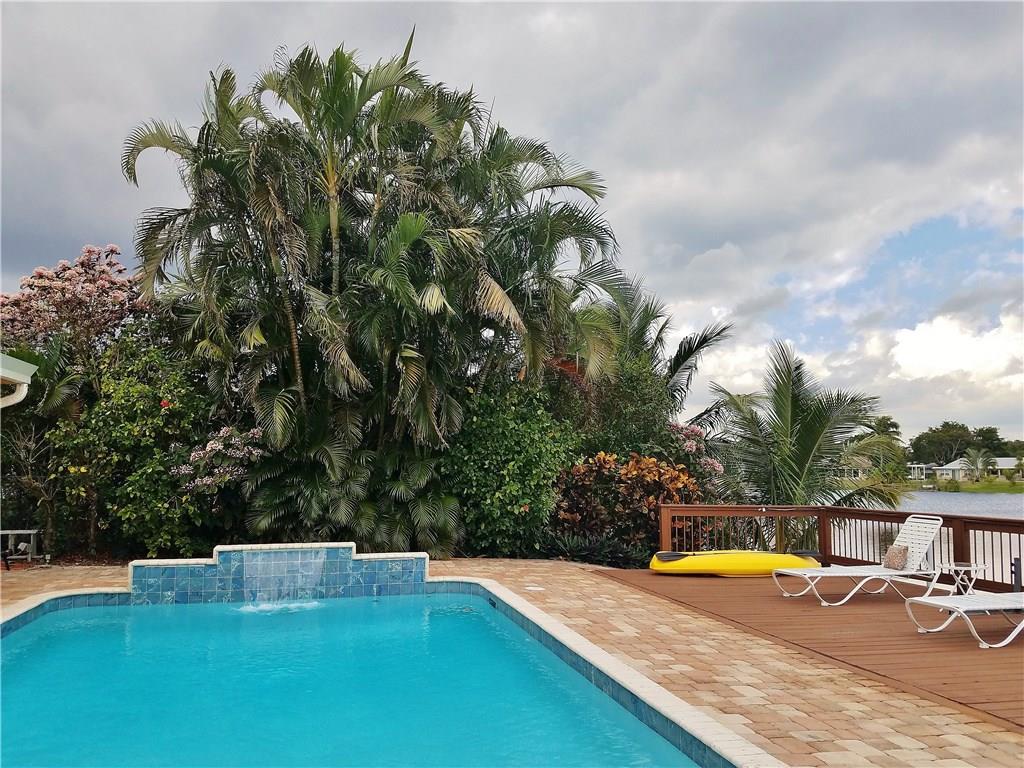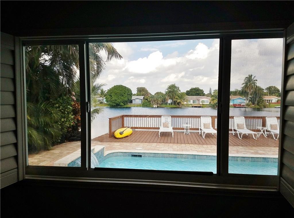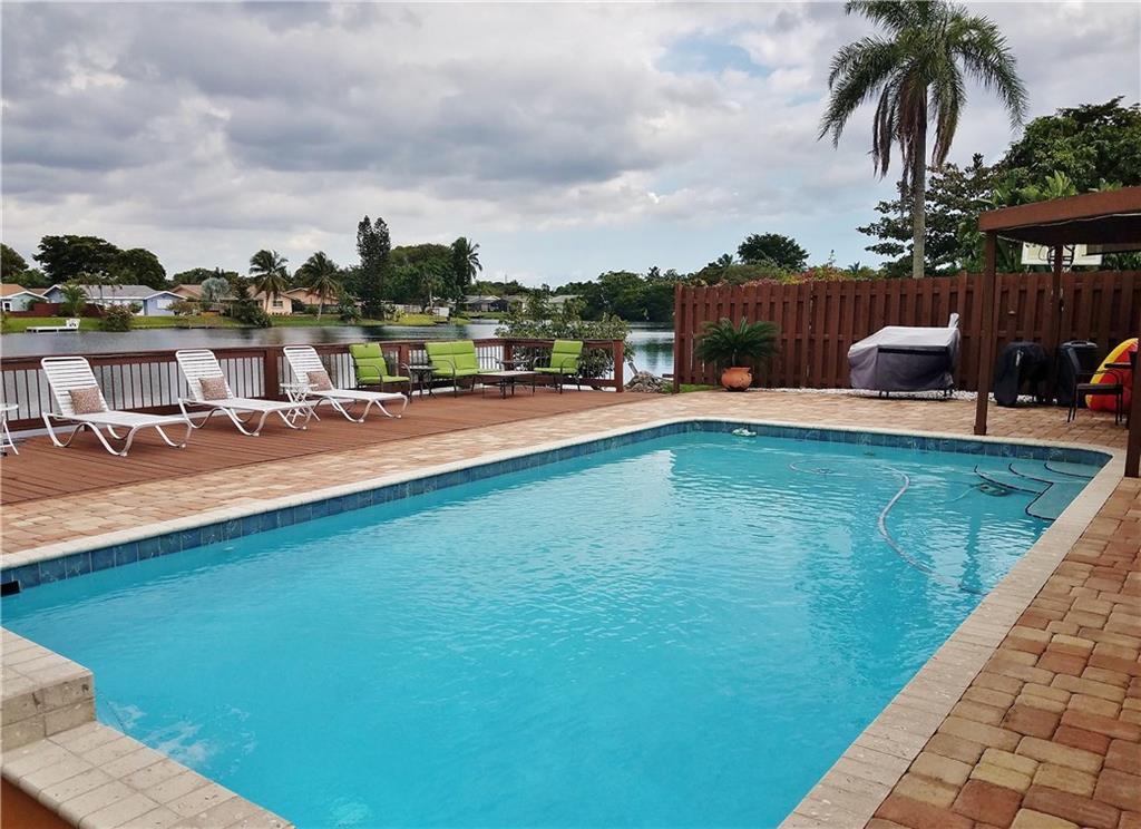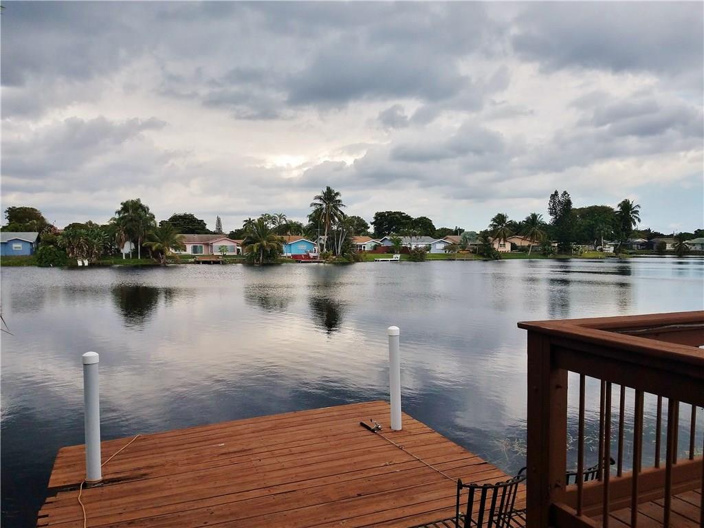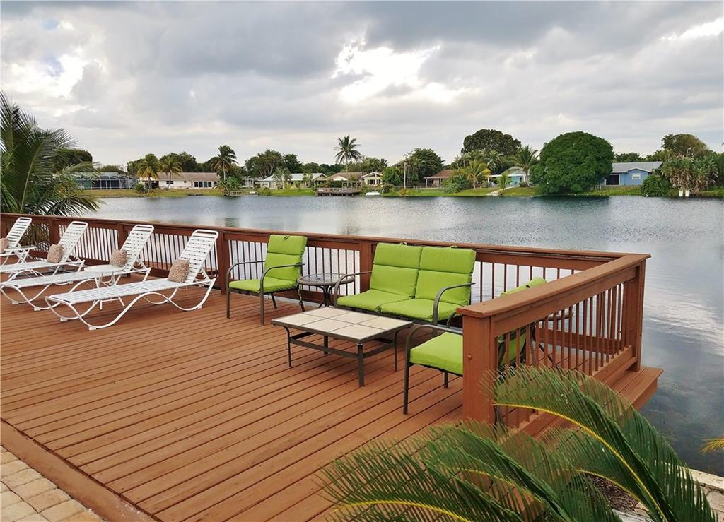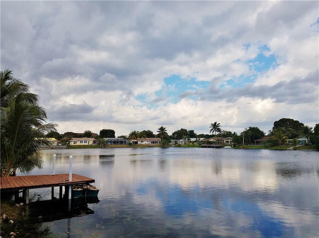 Beautiful updated LAKEFRONT home, with lovely neutral tile throughout. Very open concept with great kitchen. Updated bathrooms, Master shower with windows overlooking Lake. Private courtyard off the master bedroom. 3rd bedroom has been opened to a tv/music room off the kitchen. Oversized heated pool with waterfall. Massive deck, Pergola and entertaining areas. Huge Dock for your Kayak. Hurricane windows. Plantation shutters. 1 car garage. Paver, double driveway. AMAZING HOME