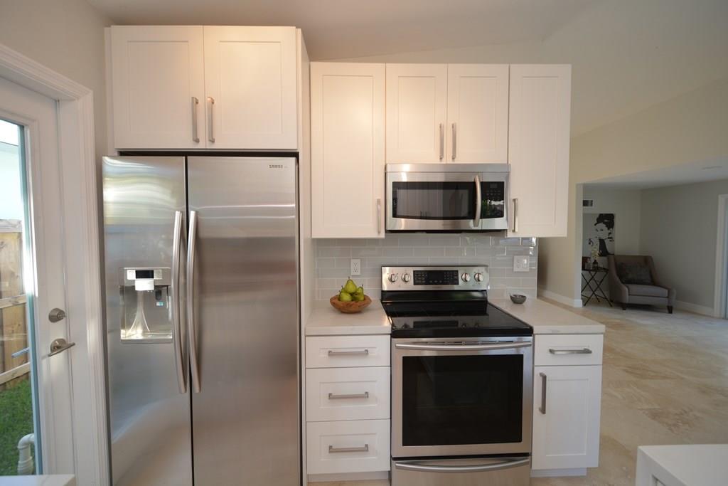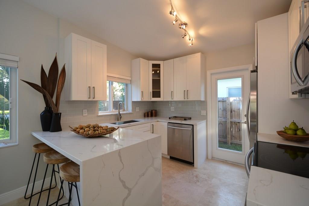 This is the one you have been waiting for!Rio Vista completely remodeled with modern finishes but not priced at 1.4 million like new construction homes in the neighborhood. 1950's modern design,vaulted ceilings. NEW roof,paint inside & out,marble floors,new stucco,hurricane windows/doors,42" cabinets,calacatta quartz counters with waterfall edge bar,samsung top of the line stainless appliances,jacuzzi tub,marble pavers,new bathrooms,new landscaping & horizontal fencing,tons of room for pool or expansion.