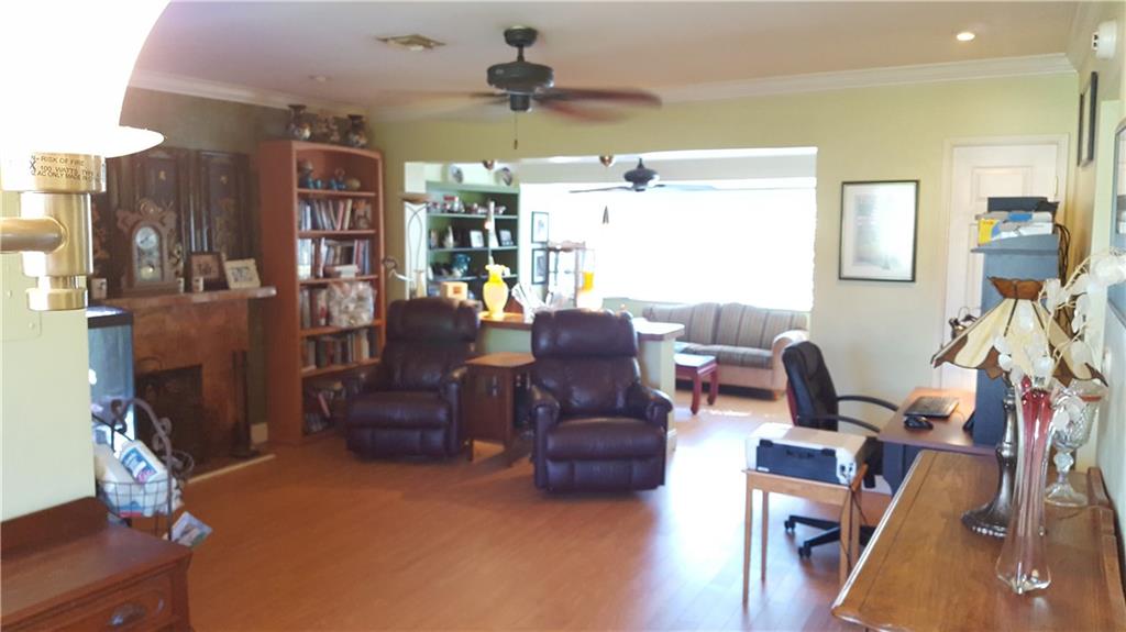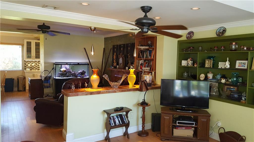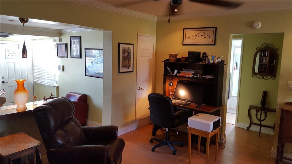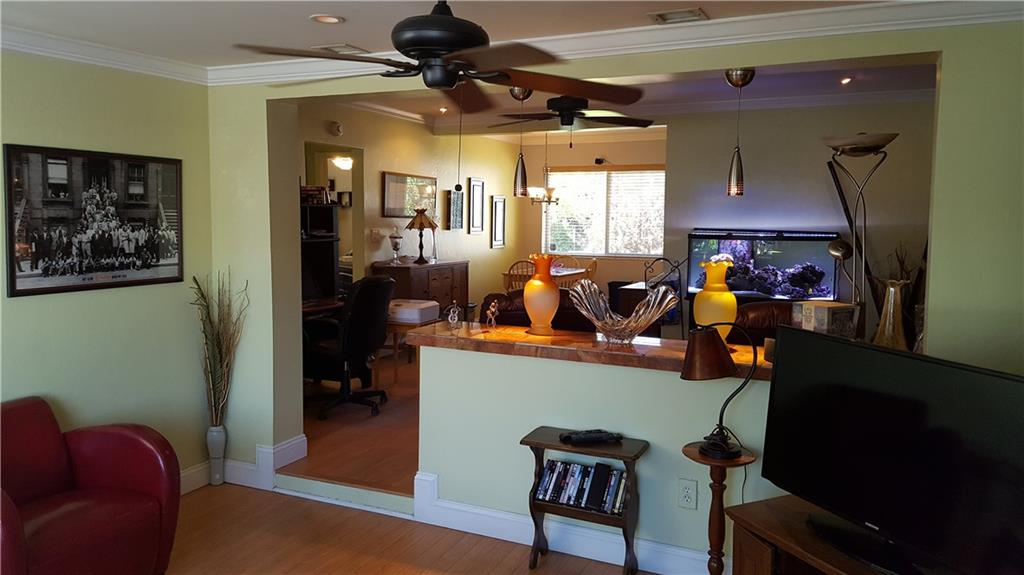 Beautifully remodeled home. In-law quarters w/ new full kitchen, new bath, own yard & separate entry. HUGE private double lot (.31 acres)! Marble fireplace, impact windows, new kitchen, quartz countertops, wood flooring, crown molding, recessed lights, venetian plaster, newer roof, newer A/C, & termite warranty. Separate A/C system for in-law quarters. Large laundry room, plenty of storage. Large storage shed in back. In-law quarters currently rented on a month-to-month basis. Tenant interested in staying