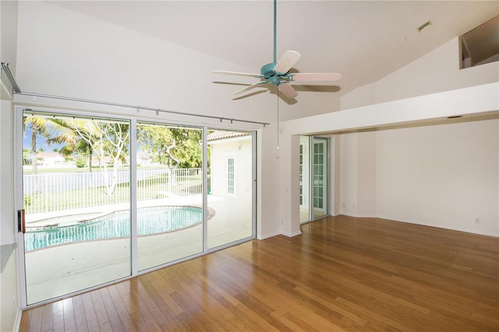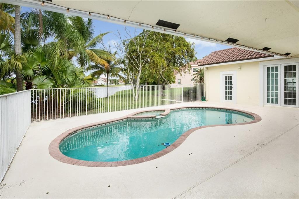 Spacious & airy Estancia Model located in sought after Laguna Springs. Ideally situated on lakefront lot with great lake views. Fenced pool with large open and covered patio. Currently boasts 3 BR (Master BR on 1st floor) plus loft (could be 4th BR) plus media room (could be 5th BR)! 3 Full bathrooms + 2 car garage. Bamboo flooring in Living, Media, and Master rooms, tile in social areas & carpeting upstairs. Family Room, very high ceilings, fresh neutral paint, central vacuum, hurricane shutters & more!