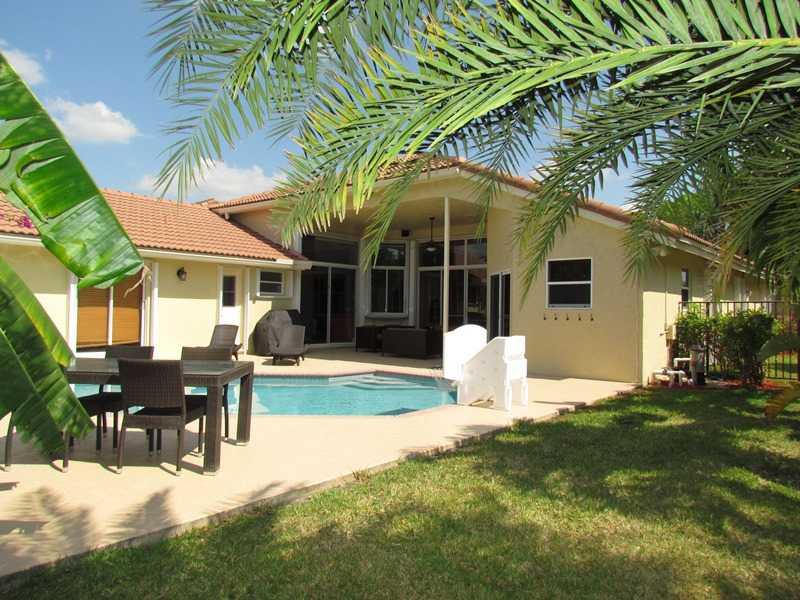 Pristine home with all the bells & whistles. 5 bedrooms plus office. Newer Roof. Kitchen remodeled with granite countertops & new stainless steel appliances, Floors just redone, Master Bath/Spa with digital steam shower plus Jacuzzi tub with mood lighting , accordion hurricane shutters, top of the line surround sound throughout, fenced yard, cabana bath, large secondary bedrooms, high end window treatments brand new, lush landscaping, cul de sac location. Community has park with tennis & basketball court.