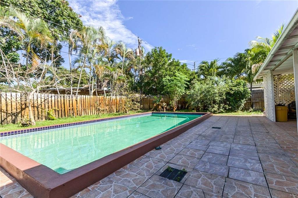Beautiful 3/2 home, centrally located in Ft. Lauderdale. Updated kitchen with wood cabinets and ss appliances. Spacious living area with laminate floors. Attached garage and separate laundry room. Large fenced yard with lots of fruit trees. The backyard features a pool, covered patio and an additional outdoor patio area. Perfect for family fun and gatherings. Walking distance to community schools and close to downtown. No HOA.