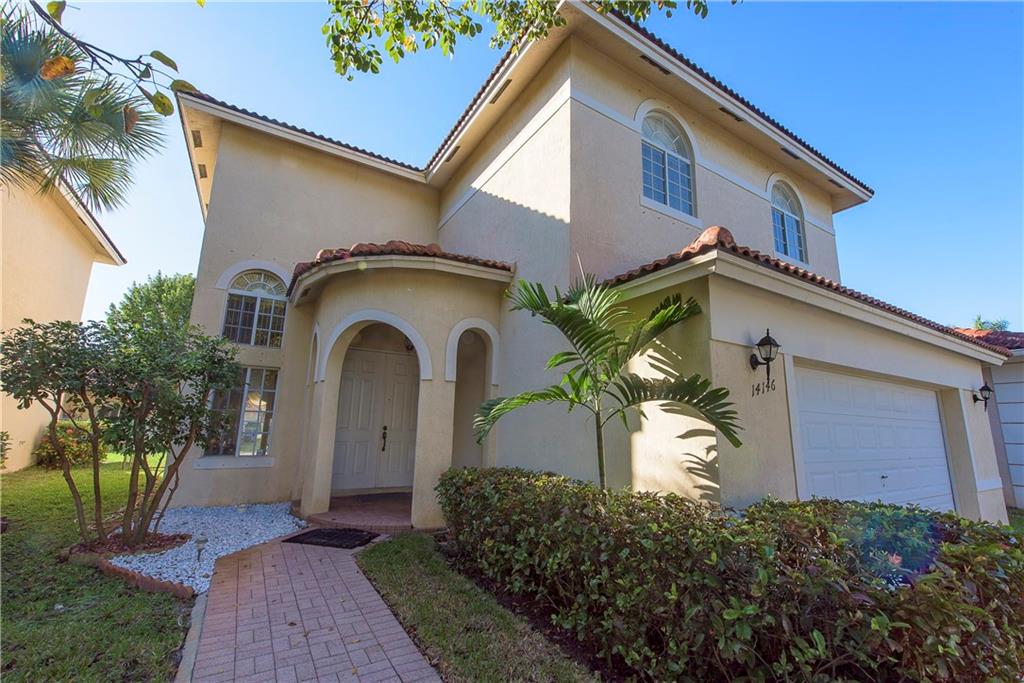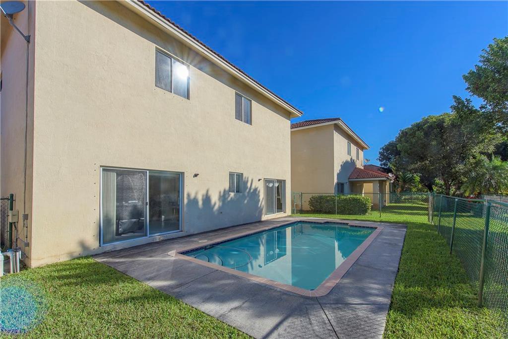 3 bedroom 2.5 bathroom home with a pool in secure gated Monarch Lakes community. Spacious kitchen & family room overlooking pool and fenced yard. Huge master bedroom with walk in closet, master bath with dual vanities, separate tub & shower and bidet. Split floor-plan with all bedrooms on 2nd floor. Laundry room, 2 Car garage, hurricane shutters. Low HOA fee, great location close to I-75 & Pembroke Gardens. As-Is Short sale- Use 2016 Far-Bar as-is contract. Seller selects title co & pays title insurance.