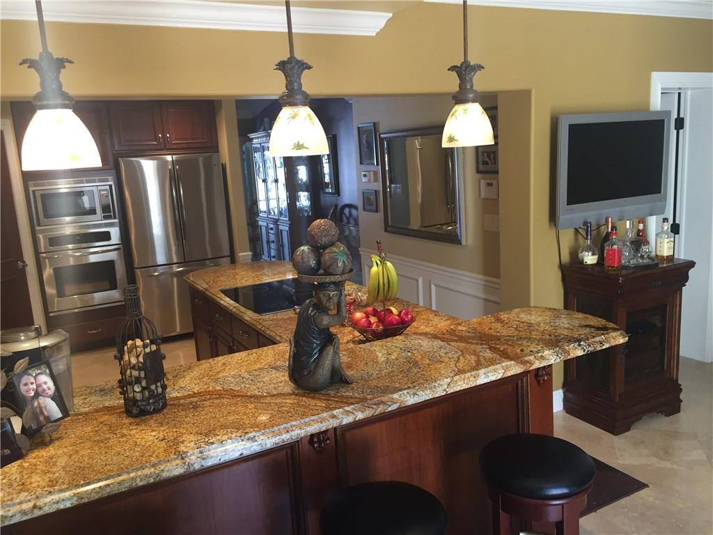 Wow! Welcome to your own private waterfront walled oasis! This home has been spectacularly renovated in the last 5 years with Travertine marble floors, luxury baths and incredible outdoor living spaces. Wrought iron gate that invites you to the courtyard pool, patio & built in BBQ. Inside a gourmet kitchen is designed with a view of the pool. Split bedrooms with outdoor access from each, Master suite boasts 5 star luxury bath. Huge screened patio overlooks waterway & private dock. This is a must see!