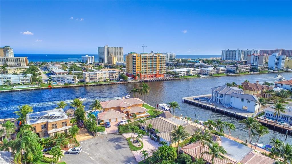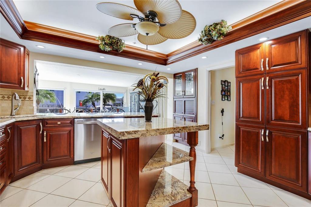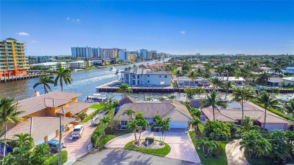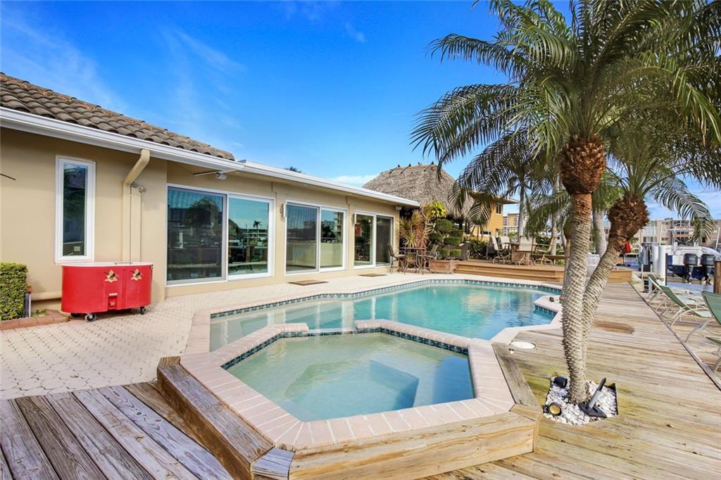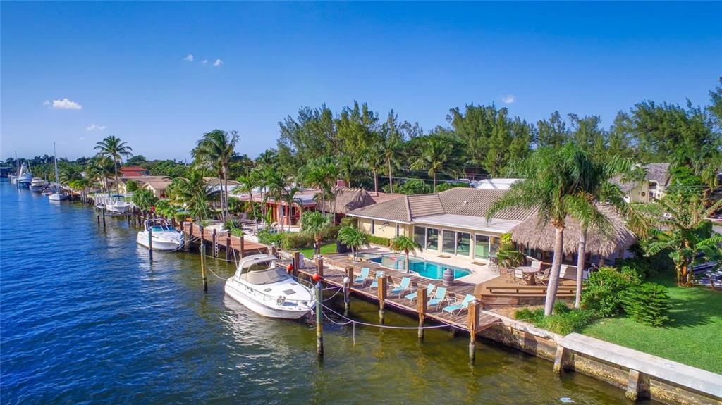 SOUTH FACING INTRACOASTAL HOME. Well maintained and updated pool home with 4 bedrooms and 3 baths. Gorgeous remodeled kitchen with wood cabinets, granite countertops, stainless steel appliances, center island and water views. Formal dining, large living room, split bedrooms and great Florida Room. Entertainer's backyard with Tiki bar, sparkling pool/spa, private dock and incredible wide views. 2-car garage and circular driveway. Cul-de-sac location, close to shopping, restaurants and the beach!