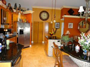 Waterfront home with attached garage, accordian shutters, upgraded kitchen and bathrooms, housewall garage system. Move-in condition.