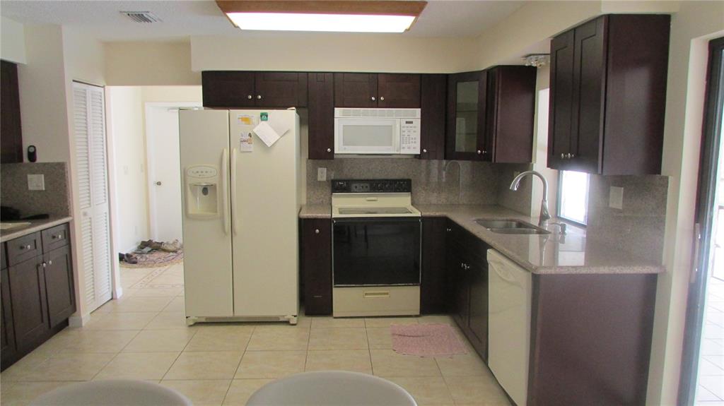 Stonebridge in Rock Creek. Corner lot. Fenced in. Nice size yard. Oversized pool, diamond bright. New pool pump. Large screen-in patio, tiled. New Roof 3 weeks old. New granite counter top, new wood cabinets. Ceramic tiles through out except bed rooms are wooden floor. 2 Car garage. New garage door opener. Hurricane panels. As-Is.