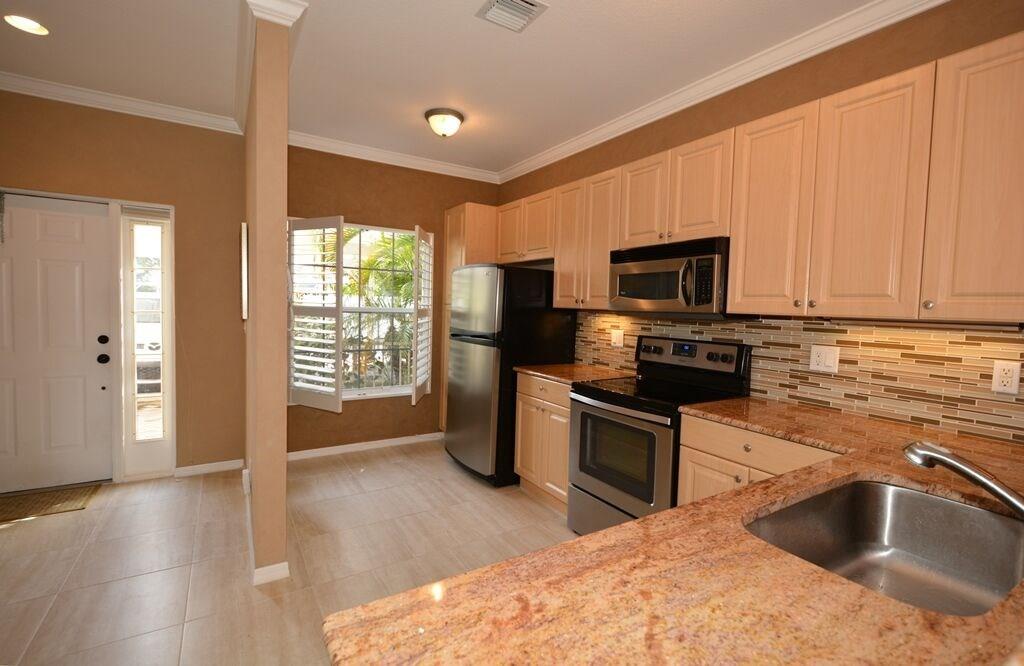 REMODELED CONTEMPORY WATERFRONT TOWN HOME. ADORABLE KEY WEST STYLE COMMUNITY - JUST 15 HOMES. PORCELAIN TILE FLOORS. 9 FOOT LIV RM CEILINGS. AMAZING WATER VIEWS FROM LIVING RM AND THE OPEN KITCHEN FEATURING GRANITE COUNTERS WITH TILE BACKSPLASH. LARGE COVERD PATIO AND PRIVATE DOCK. VAULTED CEILINGS IN MASTER SUITE WITH WATER VIEW BALCONY. WASHER/DRYER UPSTAIRS. 2 DEEDED STORAGE CLOSETS. COVERED PARKING AT YOUR DOOR. SECOND BED RM W/PRIVATE BATH. HEATED COMMUNITY POOL. BEST VALUE IN COMMUNITY.