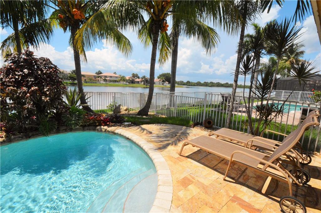 ENJOY THE RESORT FEEL OF THIS BEAUTIFUL BACKYARD WITH LOVELY LANDSCAPING SURROUNDING THE TRAVERTINE POOL DECK, ALL OVERLOOKING THE PEACEFUL LAKE. LOWER LEVEL FEATURES A FULL BATH AND BEDROOM. ALL WOOD ON STAIRS, LOWER LEVEL AND UPPER LEVEL. BEAUTIFUL FRENCH DOORS OPEN TO THE COVERED PATIO. HOME IS PROTECTED BY SECURITY SYSTEM AND ACCORDION SHUTTERS. ADJUSTED SQUARE FOOTAGE AS PER BCPA