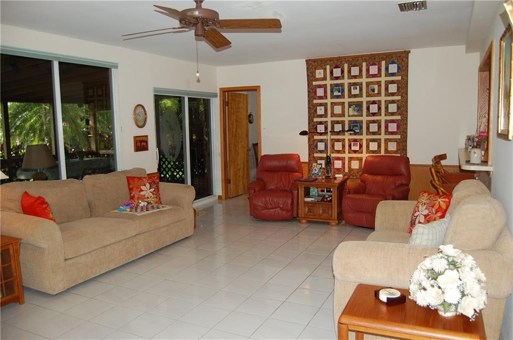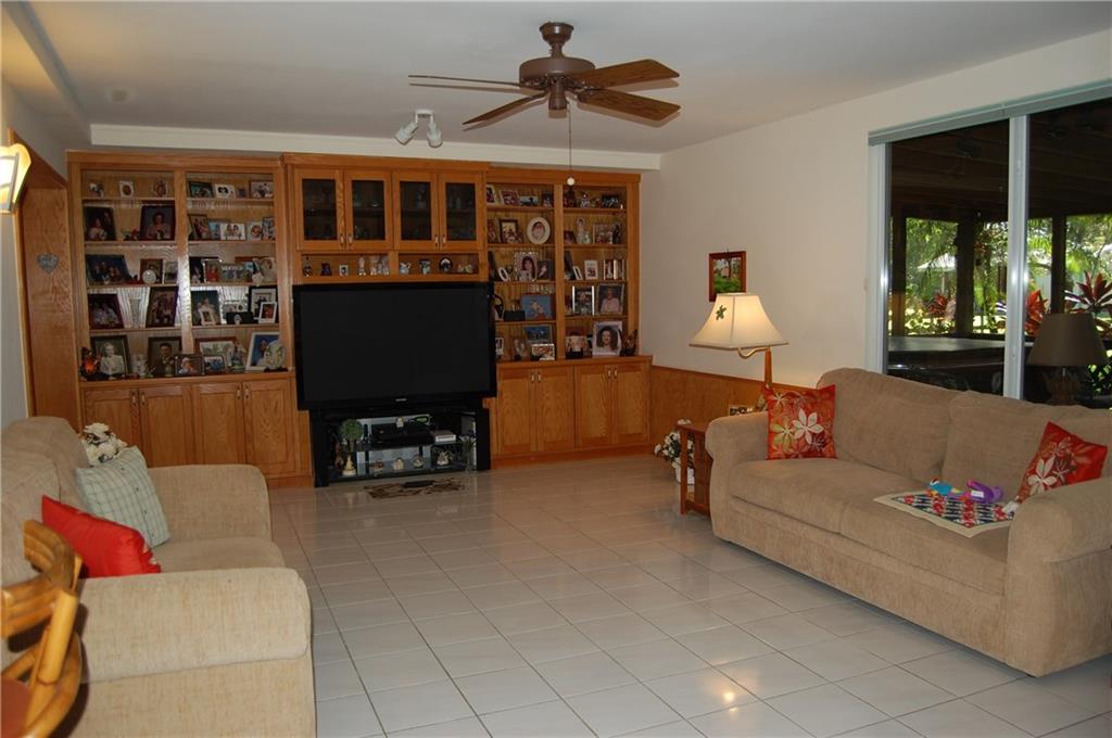 Immaculate 3/2 home with a 2 car garage and large 23 X 43 high ceiling storage building. Located on a 127' X 331' lot with fruit trees and fabulous landscaping. This home has built in cabinetry, impact windows, a large family room, formal living room and dining room. Large screened covered deck with spa / hot tub looks out over the tropical back yard with fruit trees and plenty of shade. Storage building can accommodate a 40' motor home! New deep well with new water treatment system. Call today!