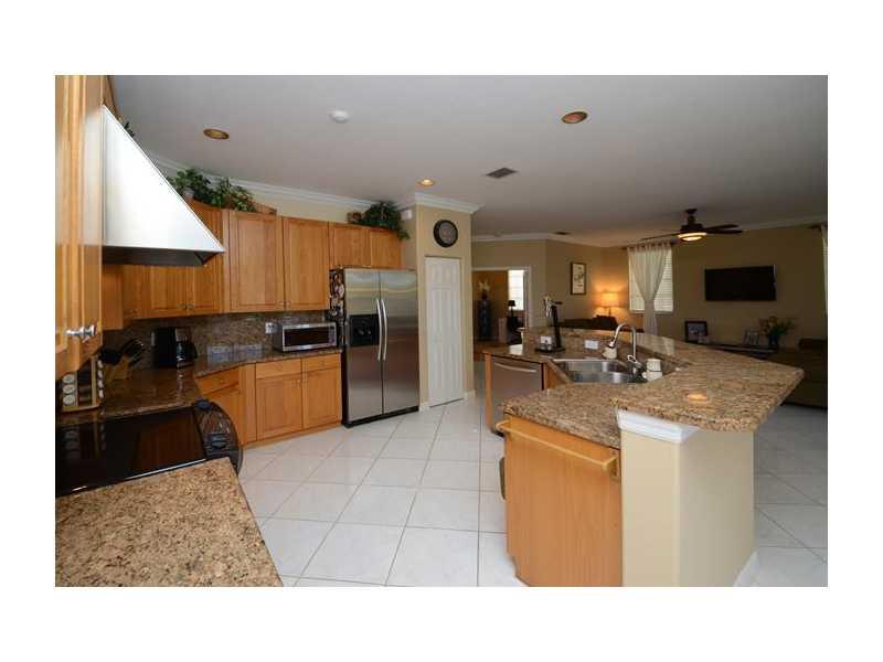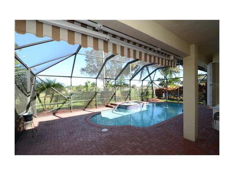 Expansive Golf Course Views! Beautiful 2 story home, move-in ready! Soaring ceilings, large living areas. Neutral color scheme. Kitchen has high-end stainless appliances 42" wood cabinets, granite counters. French doors open to screened pool & patio. Real wood floors upstairs. Master suite has 2 walk-in closets, marble Master Bath, updated vanities & granite counters. Accordion Shutters. Short walk to playground & bus stop. Weston "A" rated schools. Come enjoy all that Weston Hills offers!