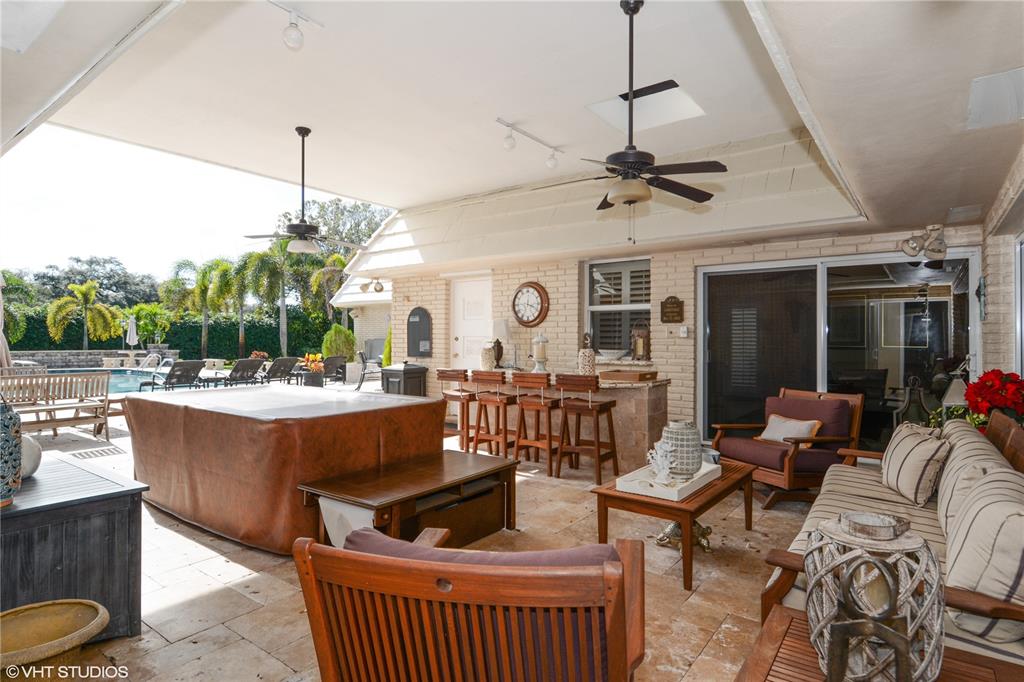Exceptional 5BR 4.5BA home in prestigious location in Estates of Emerald Hills overlooking golf course. Enormous outdoor entertainment area includes built-in bar and grill surrounding 20 by 40 swimming pool and huge backyard. Within walking distance to houses of worship. Dining room fixture is excluded. Impact windows throughout the house except for stained glass front door which has hurricane shutters. Builders acre approx. 4800 sq.ft. 2car+ garage with golf cart door. Home is in pristine condition.