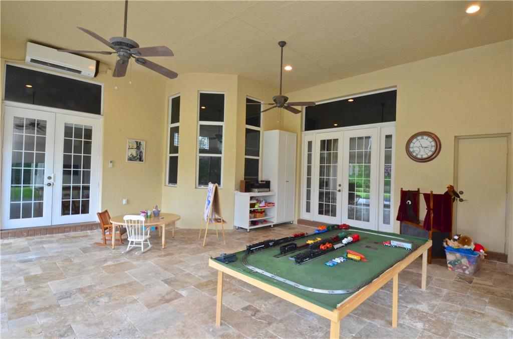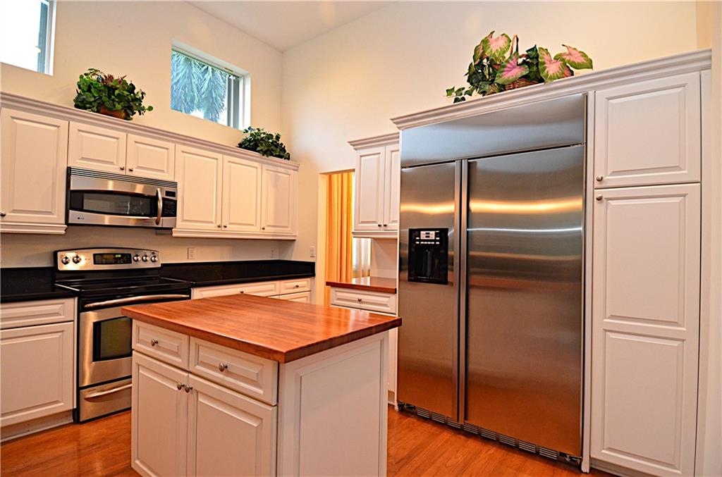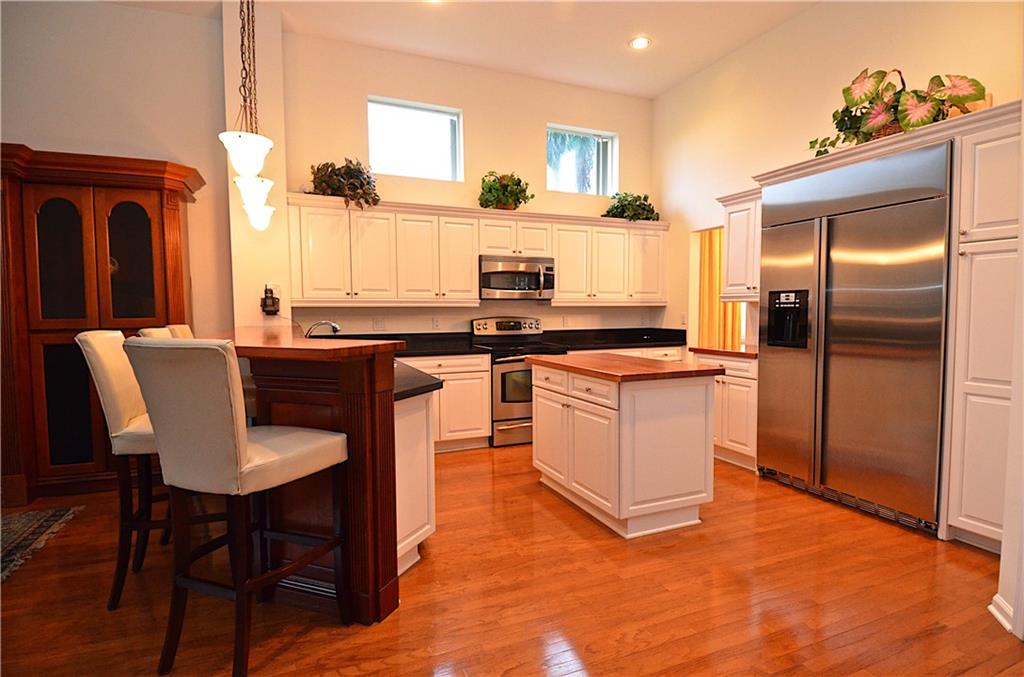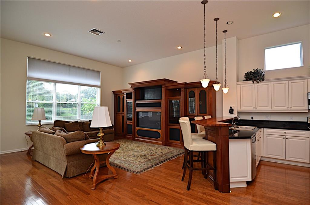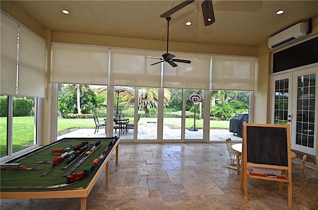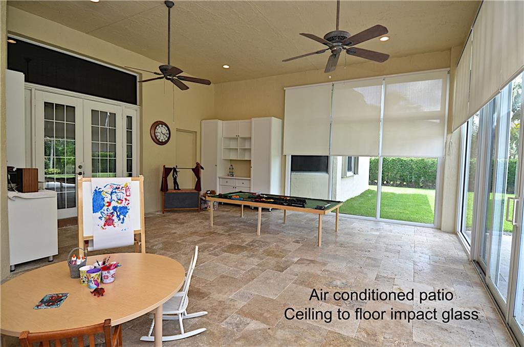 Home is highly upgraded. Kitchen features GE Profile stainless steel appliance package including a 48" side/side refrig., convection microwave, dishwasher and black galaxy marble counters with fine wood snackbar and center island top. Walk in Pantry - Stunning wood floors, new paint inside, master bedroom features a extreme 16' walk-in closet with custom designed built in cabinetry. Really unique is the nearly 600 s/f patio enclosed with impact glass, under a/c and great for playroom, etc. MUST SEE -