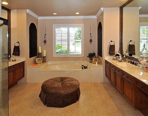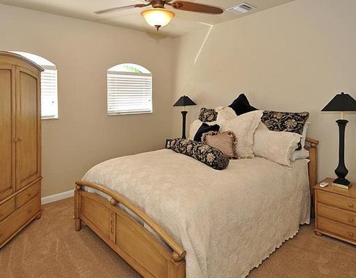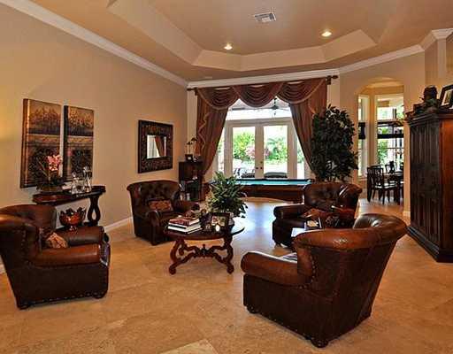 Over 4400' sq. of luxurious living area, w. 5BR/4.5 BA + Den & Loft. 24" Saturnia marble in the living areas. Gourmet kitchen w. granite counters, tumbled marble backsplash, 42" wood cabinets, double oven, stainless steel appliances. MBR w. 2 customized walk-in closets. Real hardwood floors in bedrooms & Den. Elegant built-in entertainment unit in Family Room. Lushly landscaped & private yard. Huge free-form heated pool & spa, Chicago brick paver patio & built-in Summer Kitchen w. sink & refrigerator.