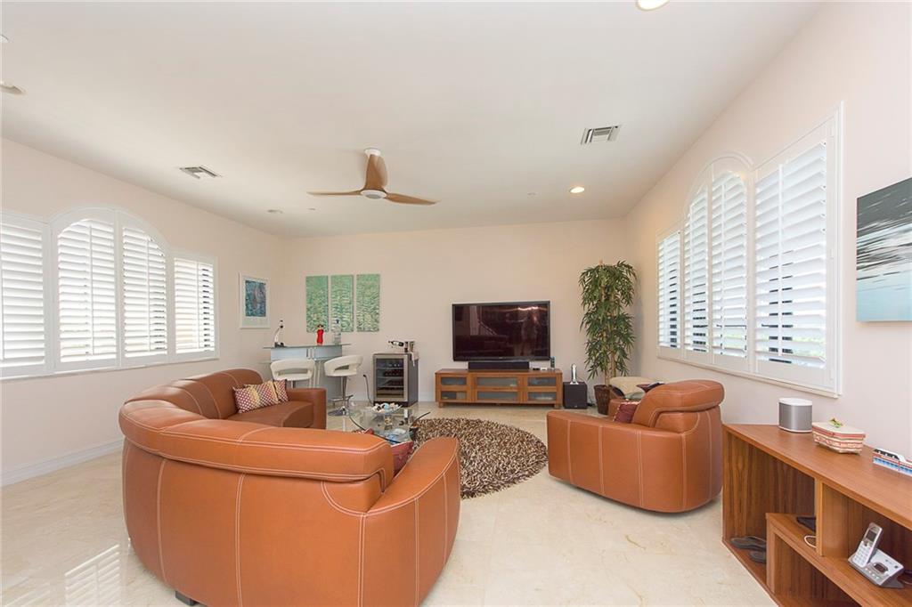 Come and enjoy the boating lifestyle in this coastal gated community on beautiful Lake Santa Barbara!Walk to beach+shoppes+restaurants!A perfect upgraded model home with private elevator, dock(w/ electric + water)up to 35ft. vessel.Marble in main living areas/wood floors in bedrooms,10Ft+ ceilings,SS Appliances,Upgraded Kitchen,crown molding & Impact windows/doors throughout.Private front yard,laundry room,2-CG,Private Rooftop Terrace that accommodates a jacuzzi or endless pool.Home is a 10!