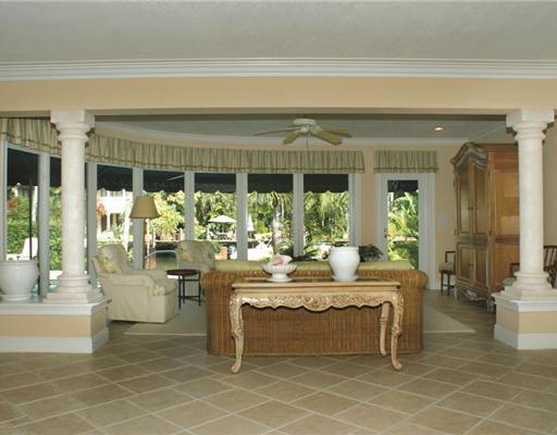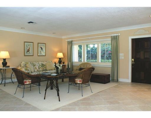 Beautifully presented East facing residence extensively remodeled in 97/98 to include new seawall,dock,roof,kitchen,PGT glass.Gated courtyard entry.Super open floorplan extended by the family room overlooking water/pool & tropical views.Very well planned newer kitchen, master suite separate to the other two bedrooms/baths. Beautifully decorated with a beach/island casual elegance.