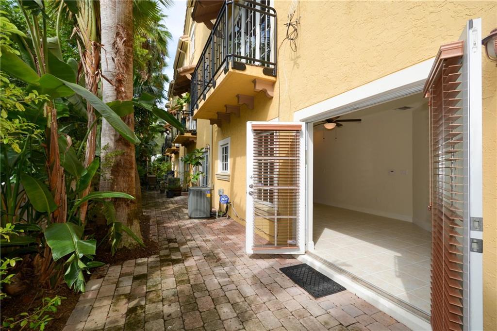 Fantastic Townhome Complex close to Downtown and walking distance to Las Olas. Interior features include large open living areas with balcony letting natural light flood in, feeling as though you are in a tree house. All impact windows., or coverings, welcoming foyer entry, high ceilings, freshly polished Travertine Floors, 3 full bathrooms with 1 half bath. Master includes 2 closets. Friendly complex has serene gated pool area. This unit additionally has private patio off back to enjoy outdoors.