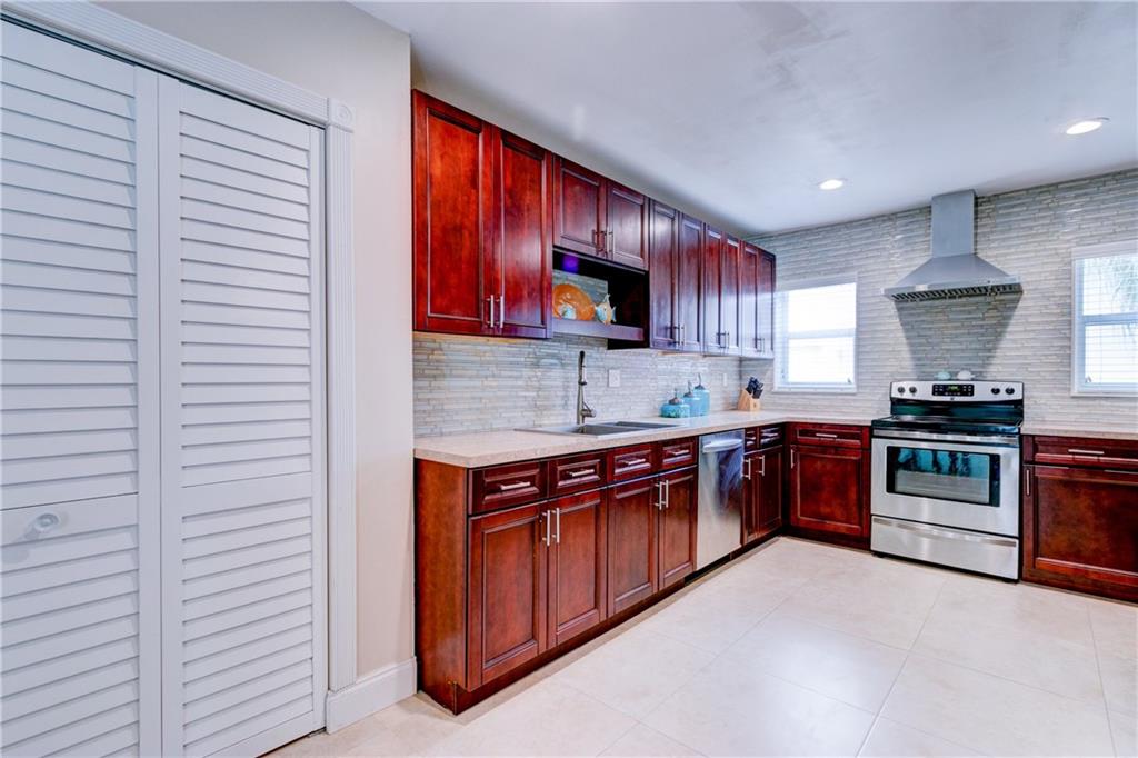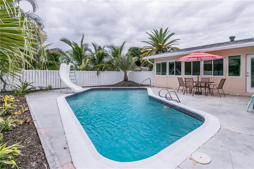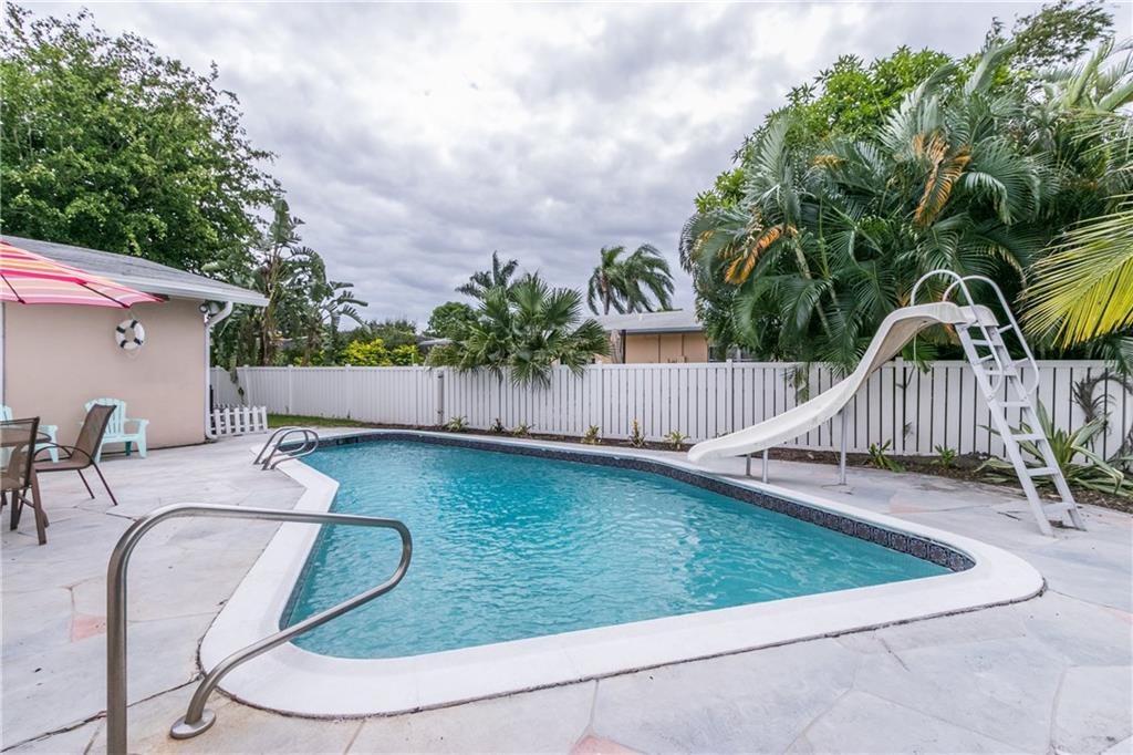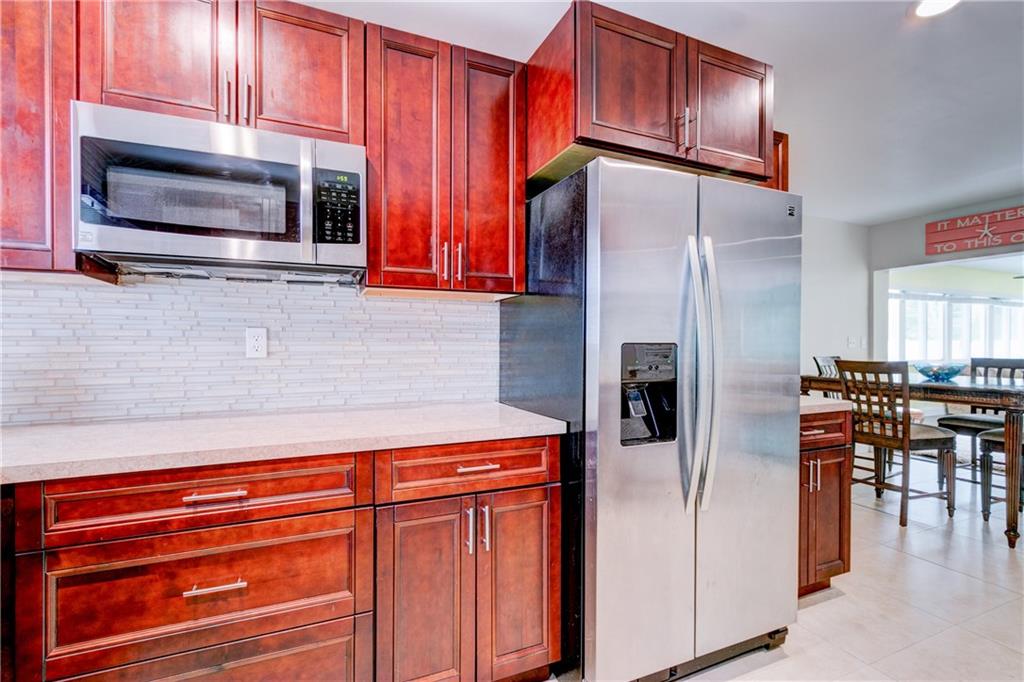 This fabulous home features 4 bedrooms, 2 baths, new impact resistant windows & doors, new A/C, beautiful remodeled kitchen overlooks living & family rooms, stainless steel appliances, tile back-splash, recessed lighting, laminate wood floors in living and family rooms, tile in kitchen and baths, carpets in bedrooms, heated pool, beautifully landscaped yard, 2-car garage, located on an oversized corner lot with privacy fence. A must see!