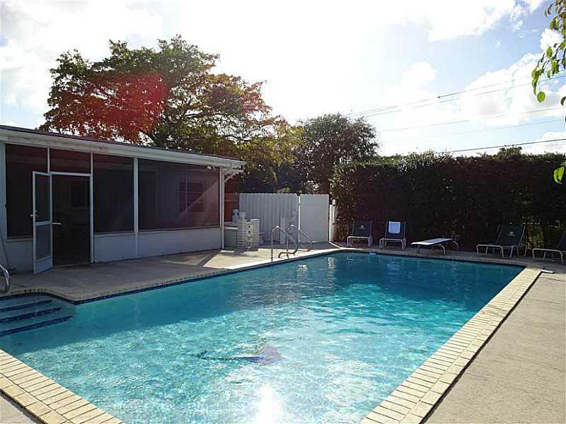 Meticulously maintained corner lot single family home in Hollywood Hills w/great open plan & 1 car garage! New roof in 05/2012. Bedrooms have laminate/pergot floors, walk-in & linen closet in master BR w/ensuite bath w/entrance to pool area. New W/D. A DT alarm system. Enjoy huge screened in patio overlooking 10 ft deep pool w/fenced in back garden that backs up to alley entrance. Huge kitchen great for entertaining w/dining area overlooking pool/patio area. This property shows great and won't last!