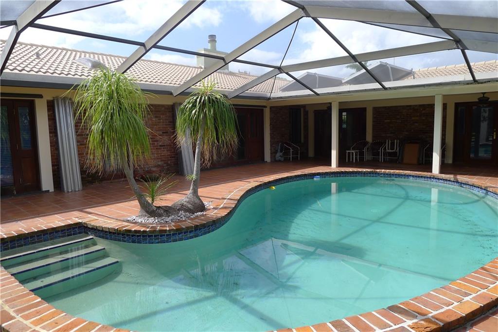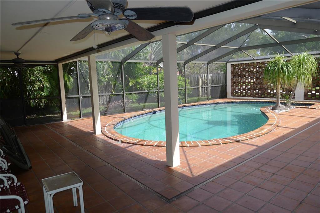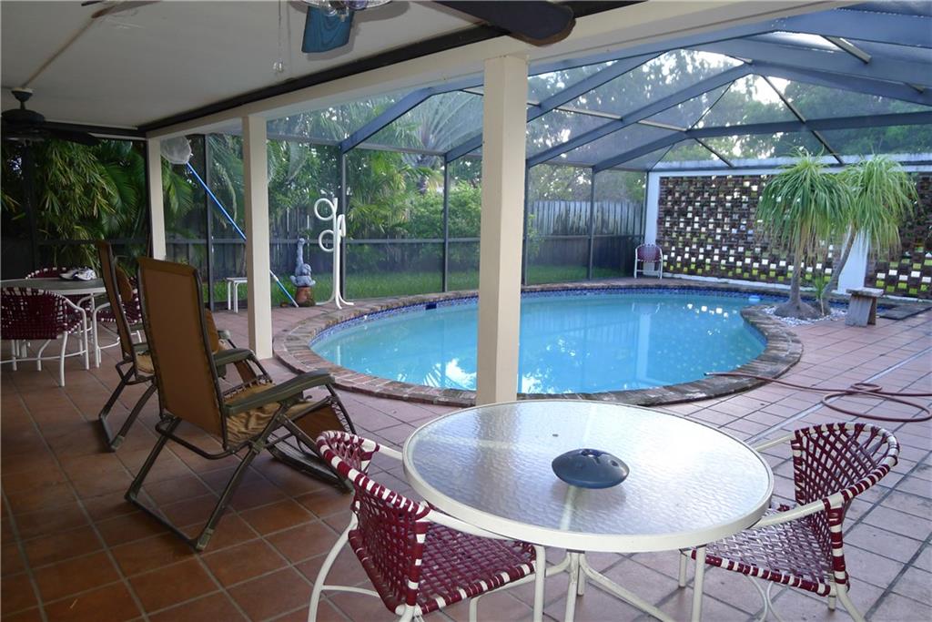 HIGHLY DESIRABLE builder's split bedroom 3/2, 2 car garage, screened pool, REAL brick wood burning FIREPLACE, corner lot! S-TILE roof, GRANITE kitchen / beautiful wood cabinetry / SS Kitchenaid appliances, wood laminate floors. French doors off every room to the screened pool. Covered porch makes great BBQ area. Bay window in the kitchen. SKYLIGHTS in kitchen & cabana bath. SOLAR hot water. Whole house water system. Lovely family home in a fantastic neighborhood! Gumbo Limbo trees. MUST SEE, do not wait!!