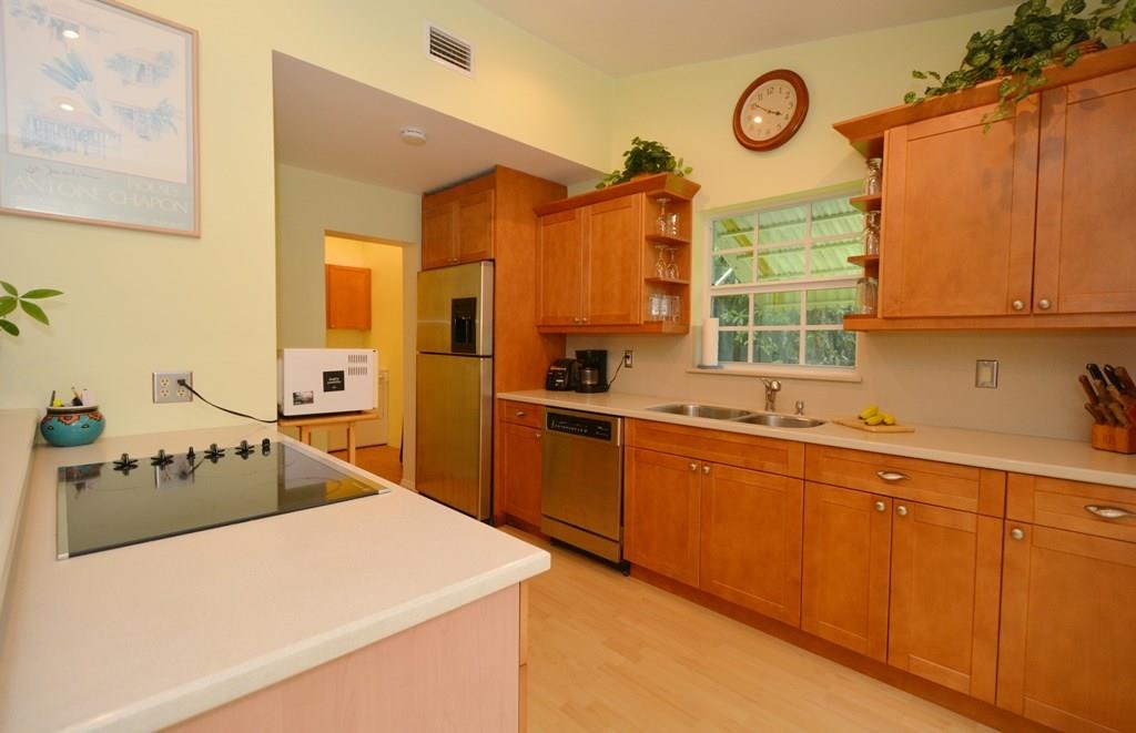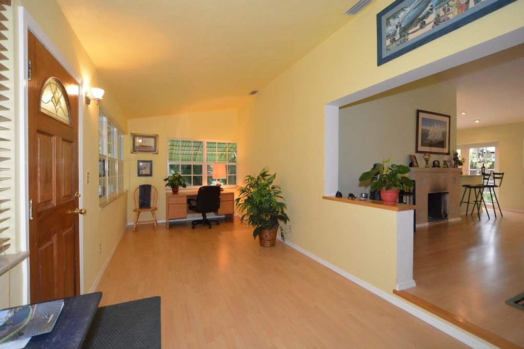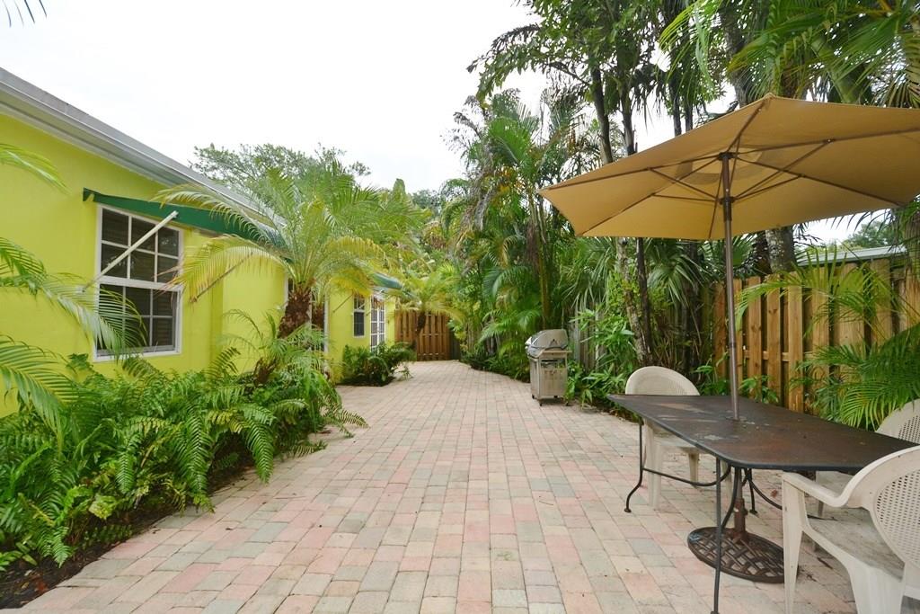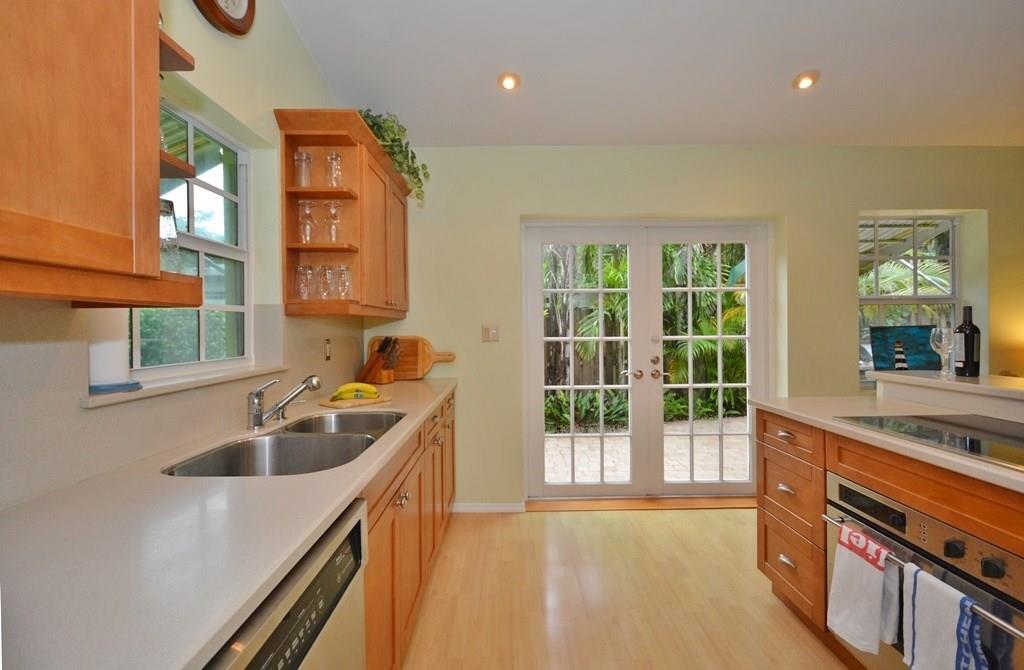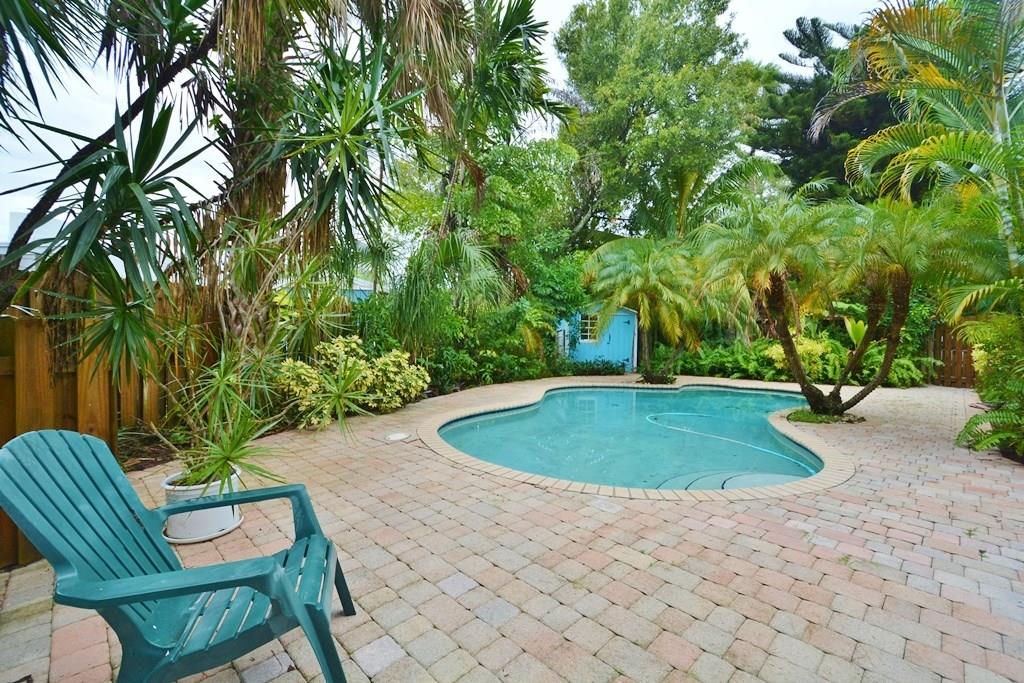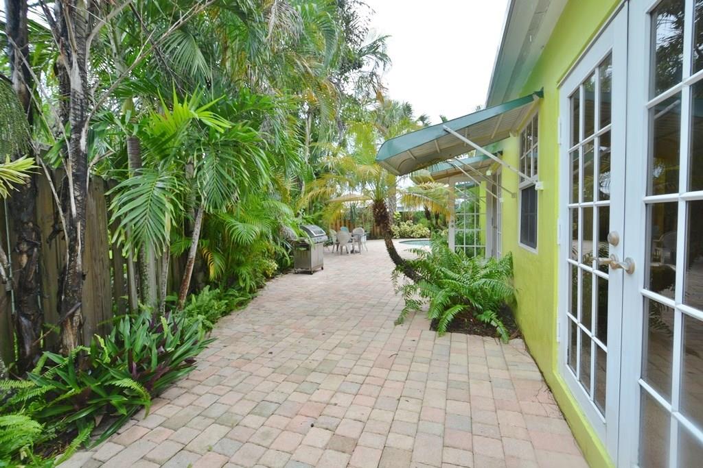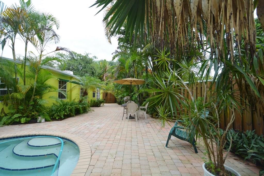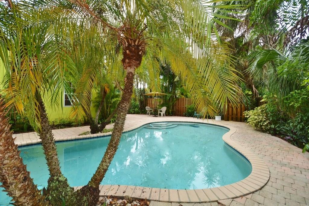Tropical Pool home on a large corner lot in sought after Shady Banks! 2 bed 2 baths, high vaulted ceilings, open living area, fireplace, laminate floors impact windows & French doors, open kitchen w/ ss appliances, corain counters & breakfast bar. Double French doors open to outdoor entertaining area w pavered patio & tropical landscaping around the pool. New roof in 2012, covered parking/carport.Fully fenced for tranquility & privacy. A great home for entertaining &minutes to downtown Las Olas & Beach!