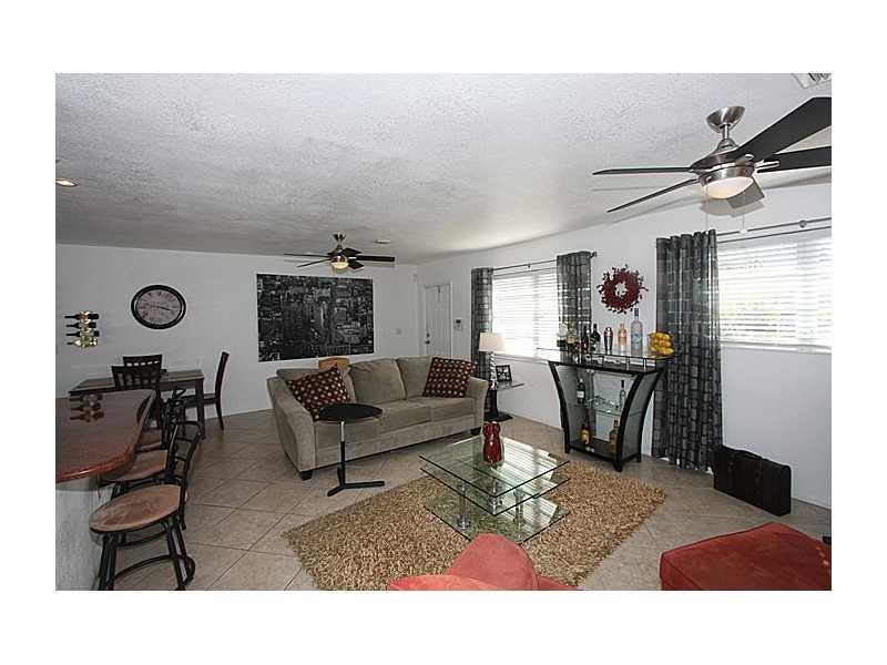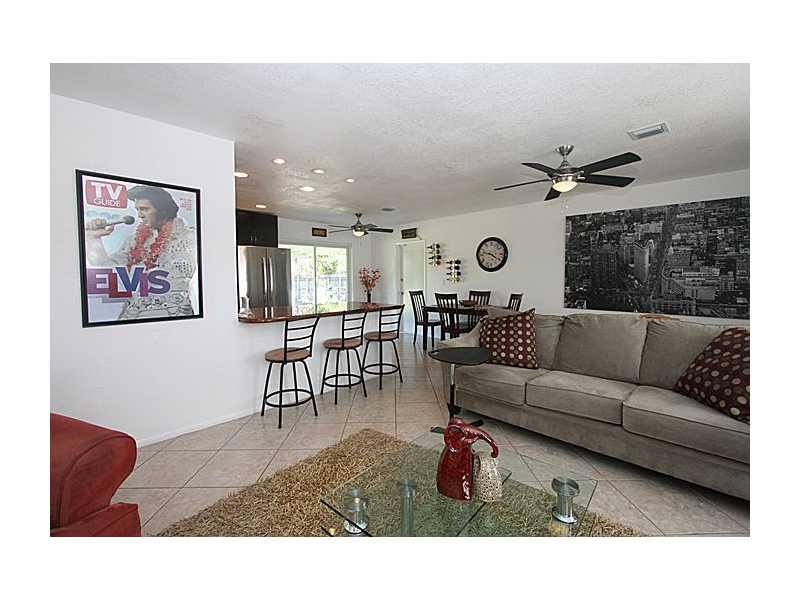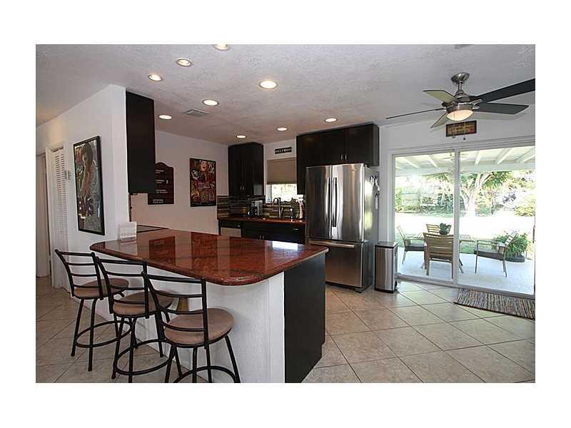 3rd bedroom is open & makes a big living room so now it is a 2 bedroom. This is a perfect house New Top of the line appliances, New A/C, Tiled Thru-out, incredible Granite counters with open kitchen, eat up bar. Everything is new A/C, tank less hot wate r heater, Front loading Washer and dryer, accordion shutters The owner likes to call the yard a park as the lot seems to be a double lot and has a beautiful sliding glass door to a great covered patio. Room for a 2nd bath.