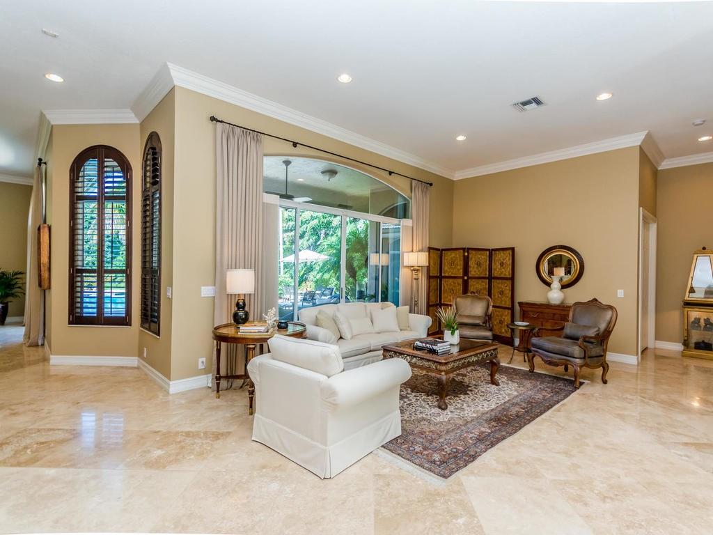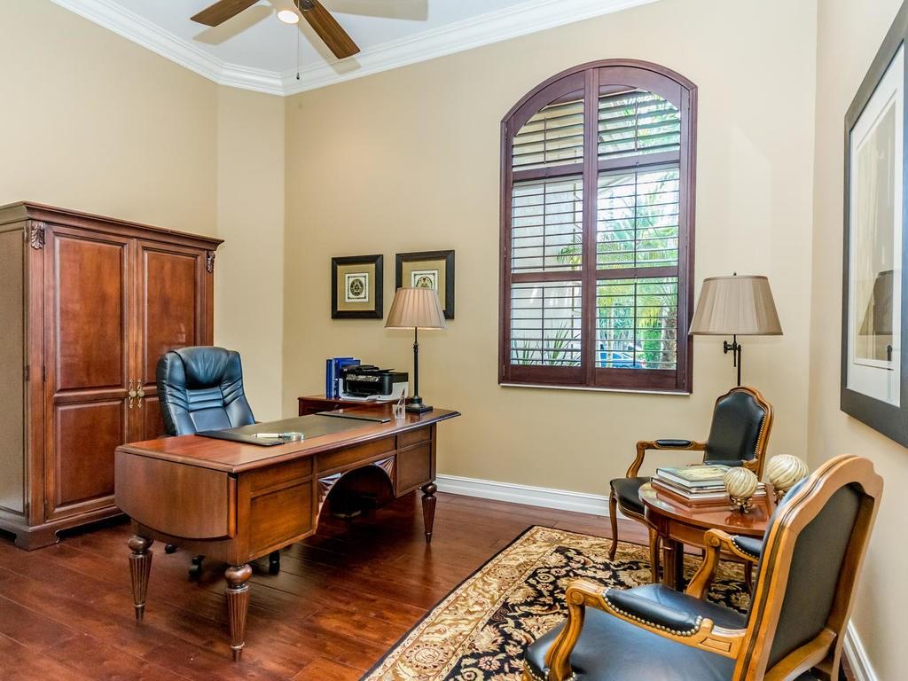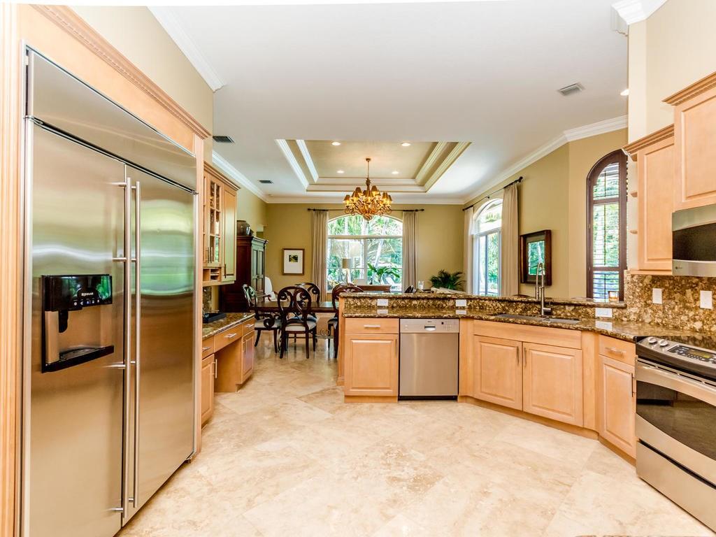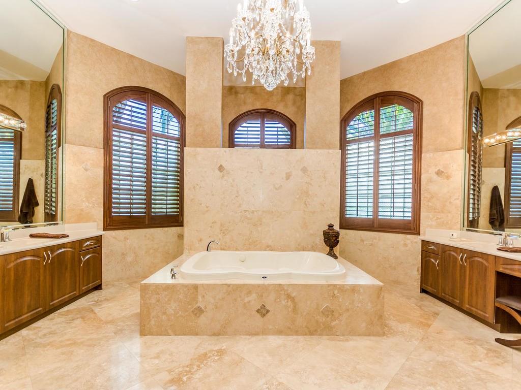 Stunning 4+office on a private builders acre. Some of the fabulous features are 24x24 travertine marble in the living areas, hardwood in master & office. Kitchen 42"solid wood cabinets& granite countertops. Stainless appliances. Master has large open dressing area with custom wood shelving. Master bath has separate Neptune jet tub and walk behind shower with dual shower heads. Oversized 20x40 heated pool with spa, Auto Pilot salt system& LED color lighting.3 car w/epoxy floor& floor to ceiling cabinets