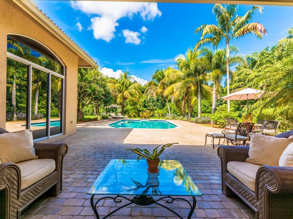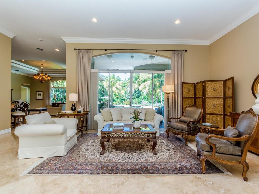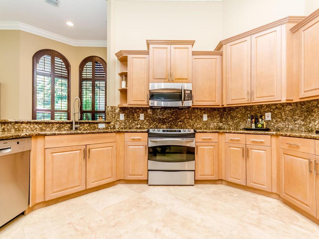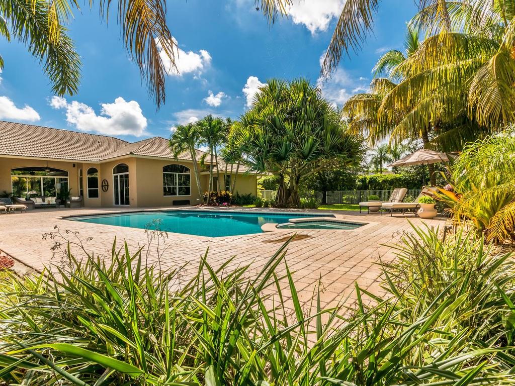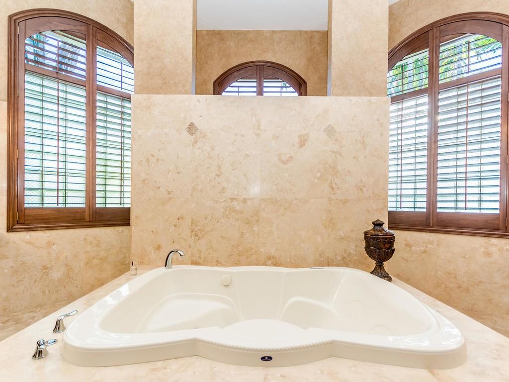 Stunning 4+office on a private builders acre. Some of the fabulous features are 24x24 travertine marble in the living areas, hardwood in master & office. Kitchen 42"solid wood cabinets& granite countertops. Stainless appliances. Master has large open dressing area with custom wood shelving. Master bath has separate Neptune jet tub and walk behind shower with dual shower heads. Oversized 20x40 heated pool with spa, Auto Pilot salt system& LED color lighting.3 car w/epoxy floor& floor to ceiling cabinets
