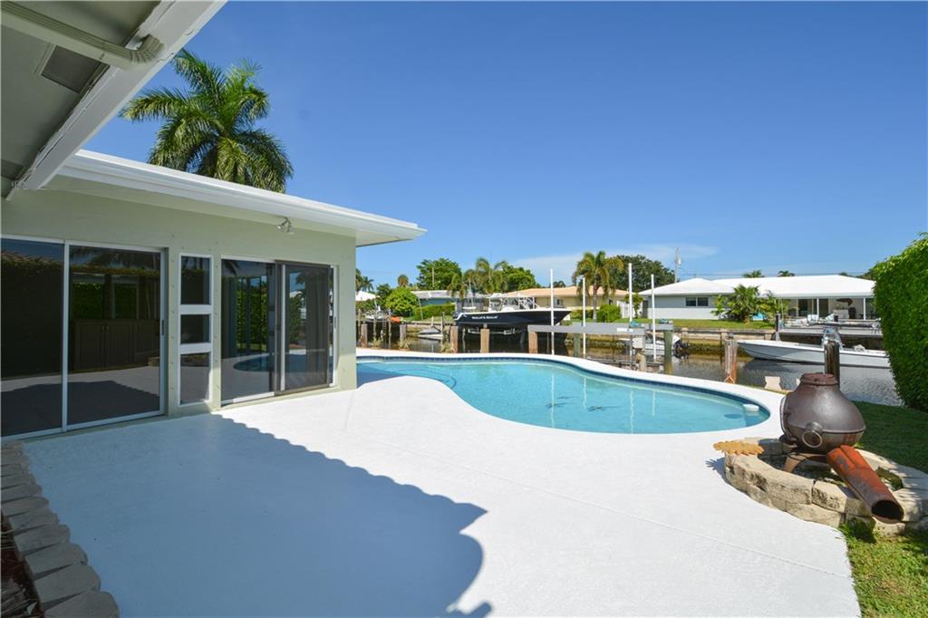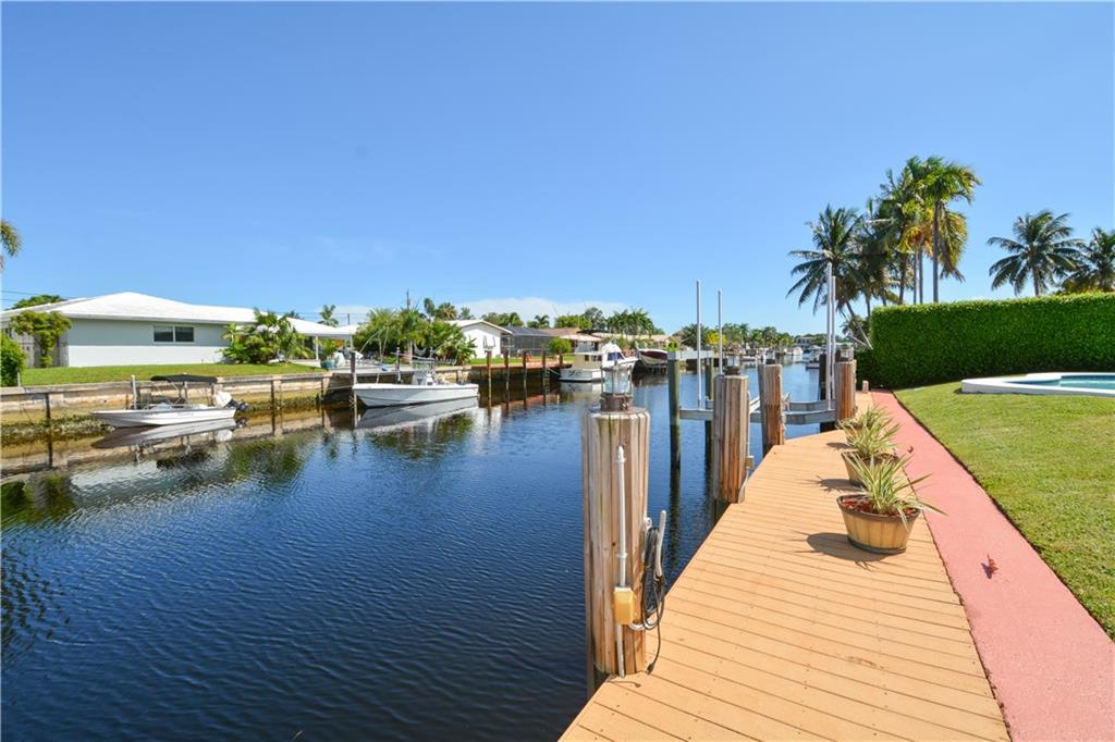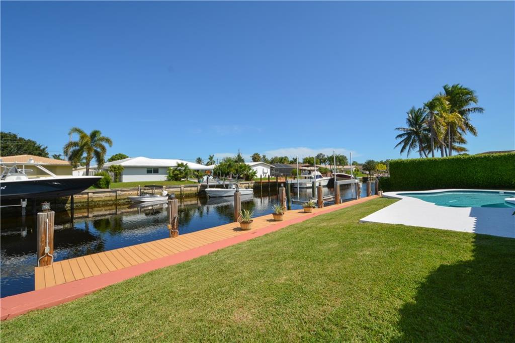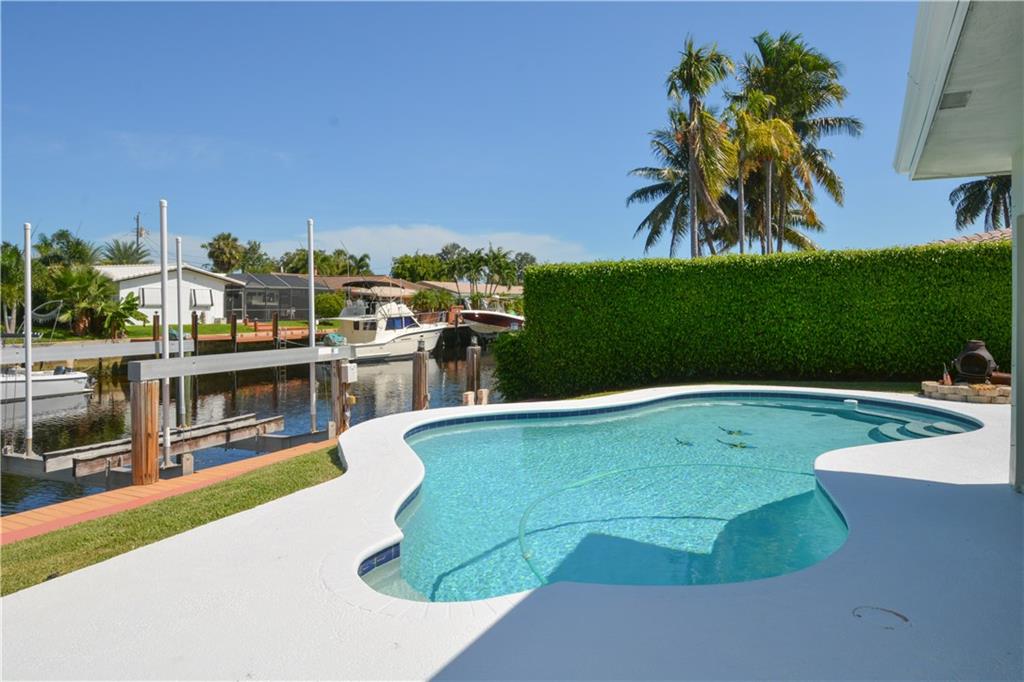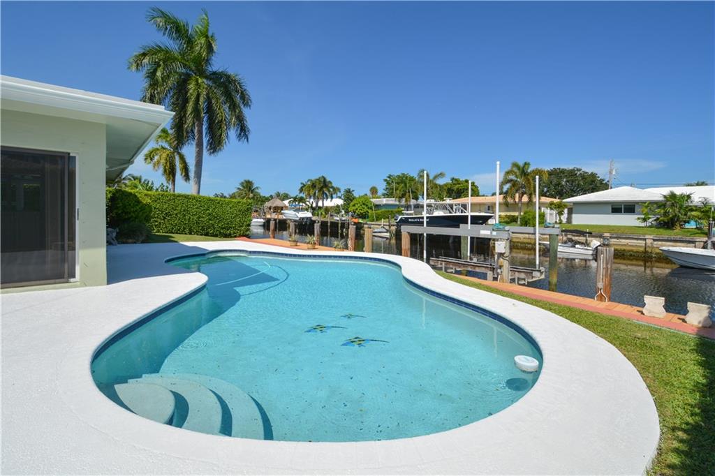 Fantastic 3 bedroom, 2 bath, 2 car garage pool home on 80 feet of ocean access water with 16,000 LB boat lift. The large and open split bedroom floor plan make this a great entertainment home. Tile and wood floors throughout. Kitchen has been updated with wood cabinets, stainless steel appliance and granite counter tops. Master has been completely updated. Beautiful pool deck with large yard and east exposure perfect for enjoying evenings outside. This home is in excellent condition and won't last long.