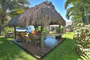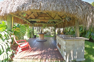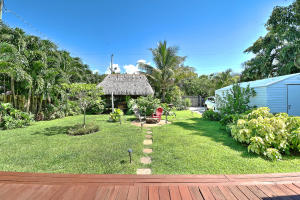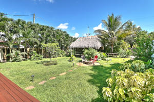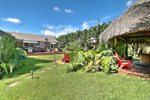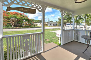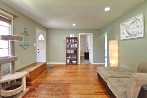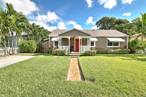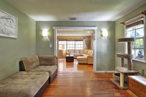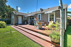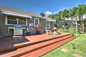 Rare Find! Charming highly-upgraded 3Bed/2Bath Historic home with an incredible custom-built Tropical Tiki entertainment backyard. This Hollywood residence occupies 1,263 sf with dual front and back street entry access. From first sight, you are attracted to the friendly and inviting covered front porch. Inside, you are welcomed by the beautifully restored 1948 hardwood floors throughout the expansive den and family room. Natural light fills each room containing recently installed wood blinds and outside metal window awnings to conserve cool temperature and desired privacy. The kitchen is spotless and updated from top to bottom with porcelain tile flooring, neutral granite countertops and ceramic tile backsplash, white wood shaker cabinetry, and Frigidaire stainless steel appliances and op